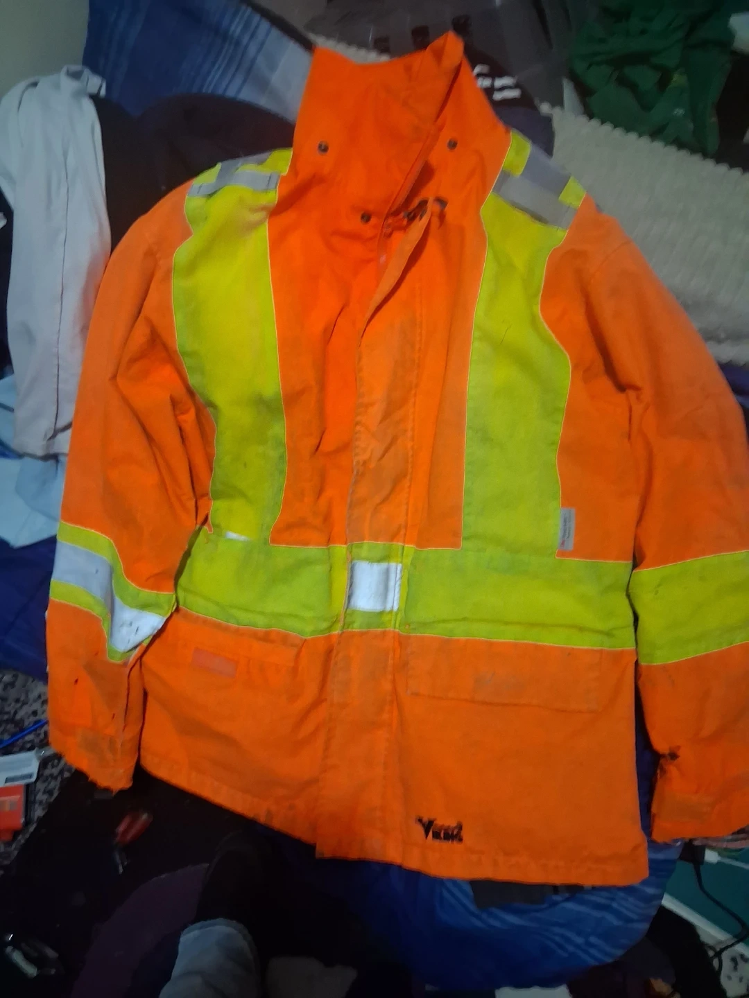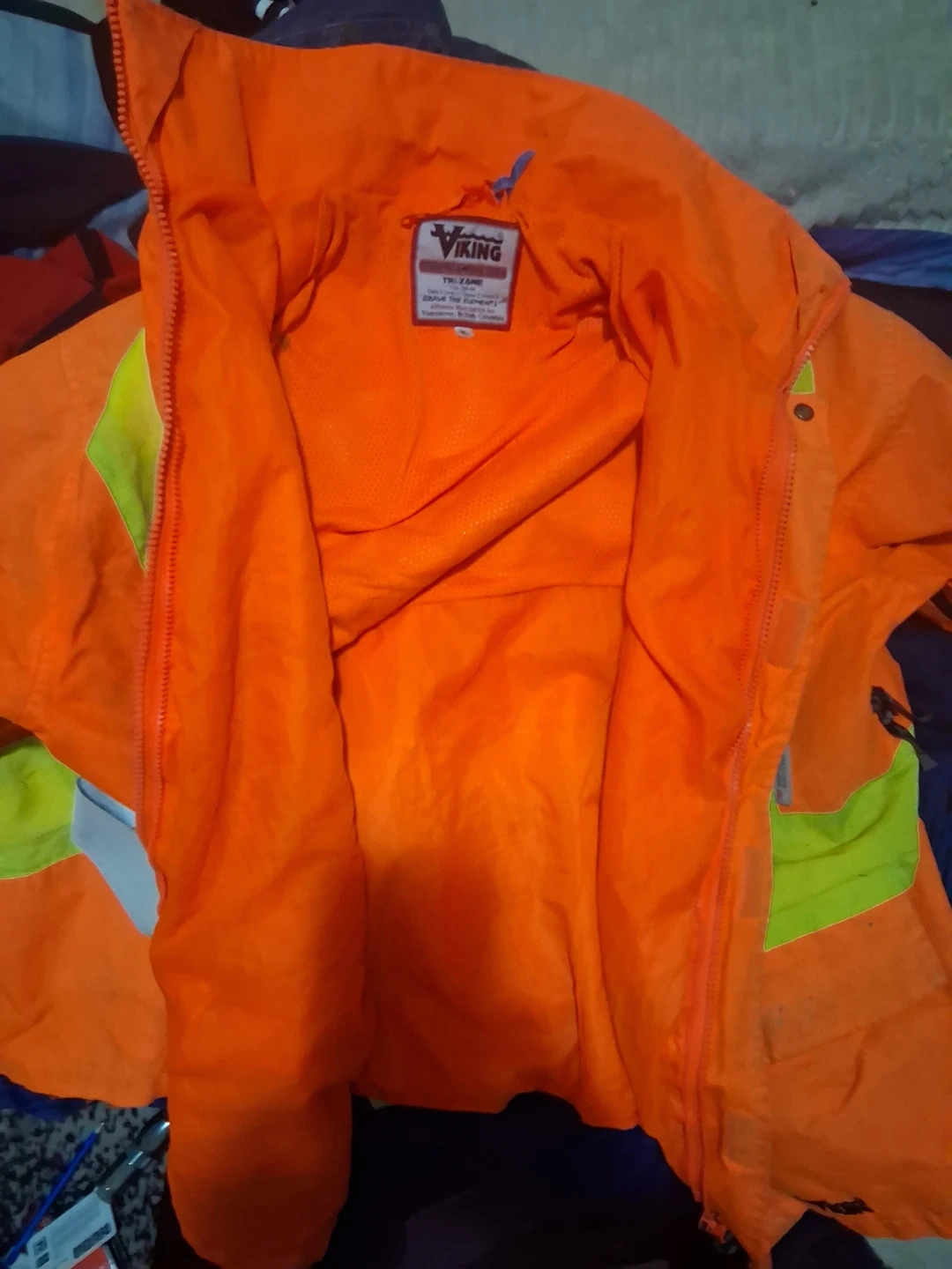 Selling a Viking Journeyman 300D high-visibility safety jacket in size XL. This heavy-duty jacket is waterproof and designed for demanding outdoor work. It features 3M Scotchlite reflective material for enhanced visibility. The jacket is made from durable 300D Trilobal Rip-stop Polyester with PU backing for durability, ensuring resistance to abrasion, punctures, and snags retails for $185 up to $288 asking $30 obo