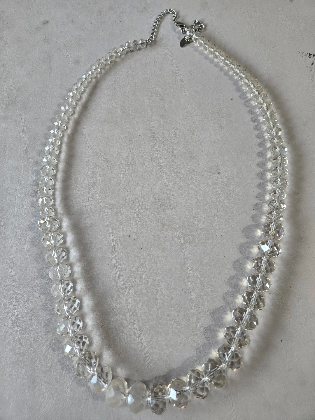 A lovely Aldo crystal beaded necklace! This piece features clear, faceted crystal beads strung together on a delicate chain. It adds a touch of elegance to any outfit and is perfect for both casual and formal occasions