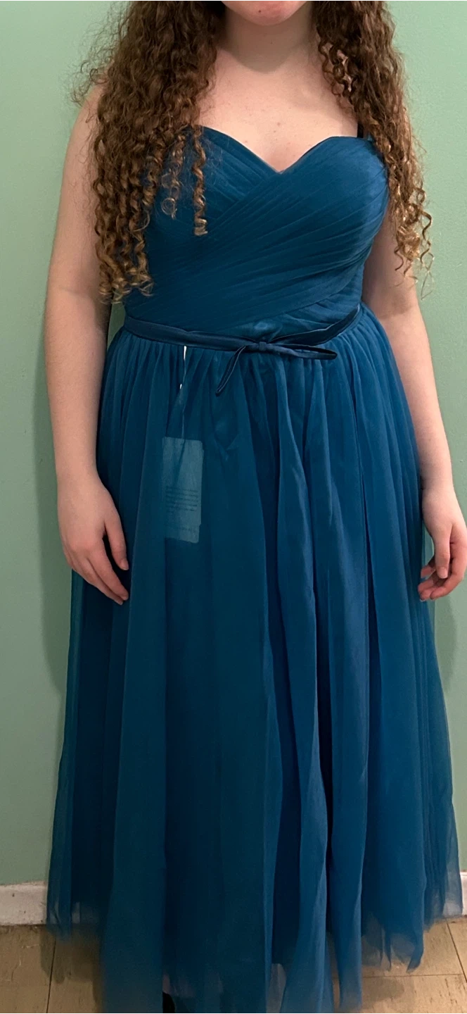 Selling a beautiful teal strapless formal dress! It's a lovely colour and would be perfect for a special occasion. Feel free to ask any questions you may have! Also has pockets.