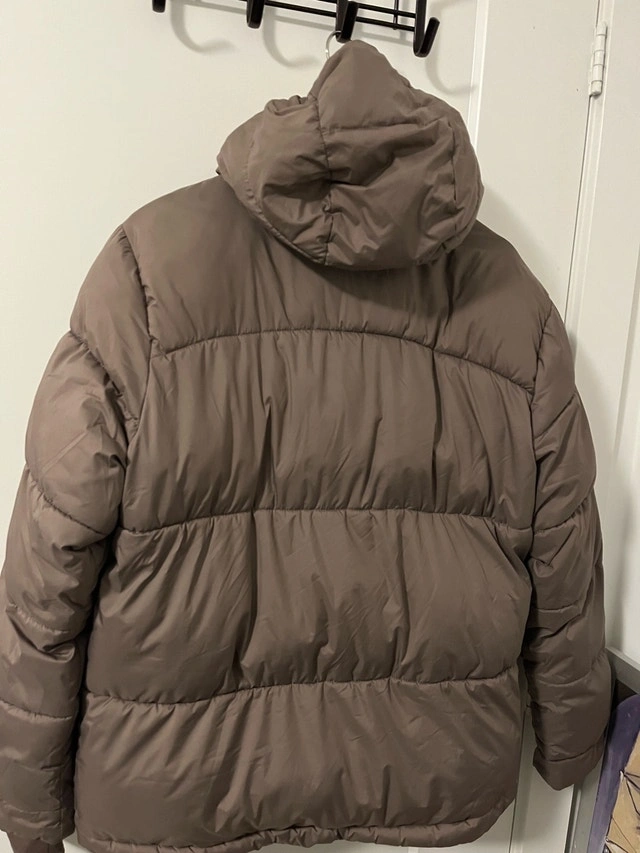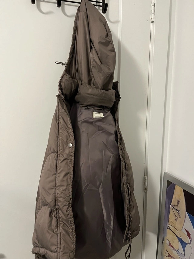 Snuggle up in style with this Aerie puffer jacket, perfect for braving the Canadian chill. This stylish jacket features a cozy hood, and is great for keeping you warm and fashionable. I'm selling it because I'm in need of decluttering. Although this puffer has been worn it's still in good condition, ready for more adventures. Specifications: * Brand: Aerie * Size: Medium * Colour: Brown Looking at similar listings on Kijiji, a fair price seems to be around $40. If the ad is up, it's available!