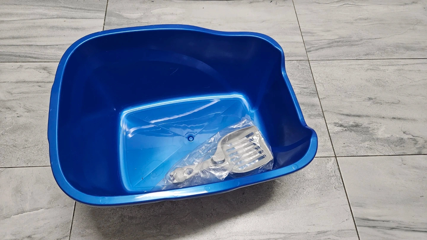 Plastic Cat Litter box. Brand new - never used. Comes with a plastic litter scoop.