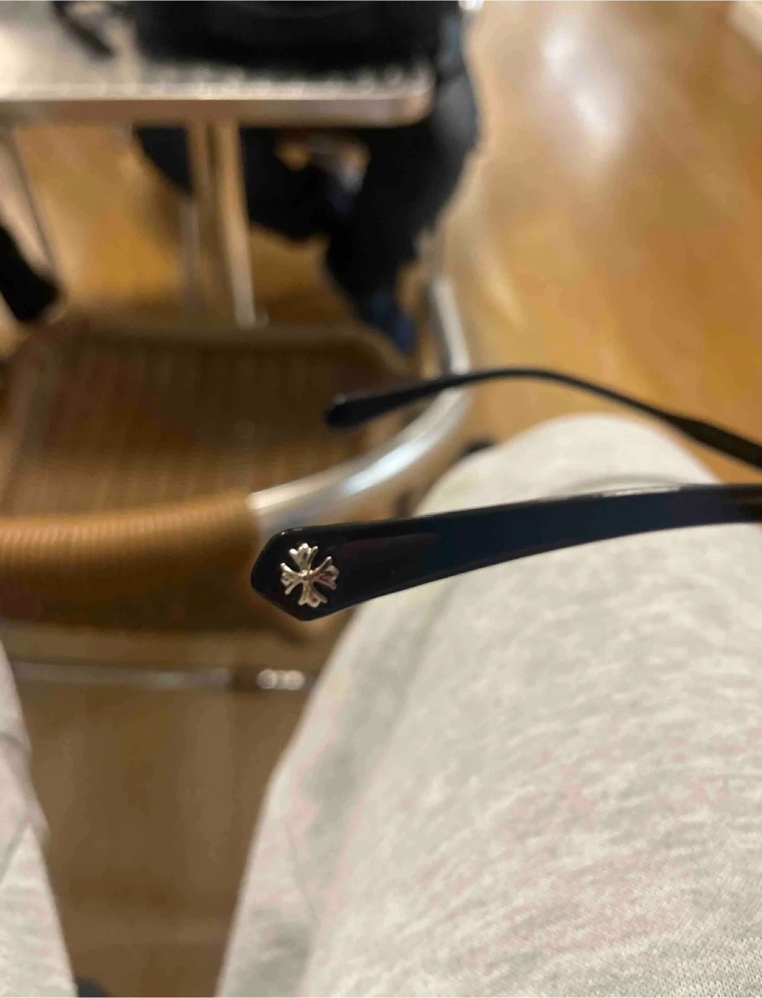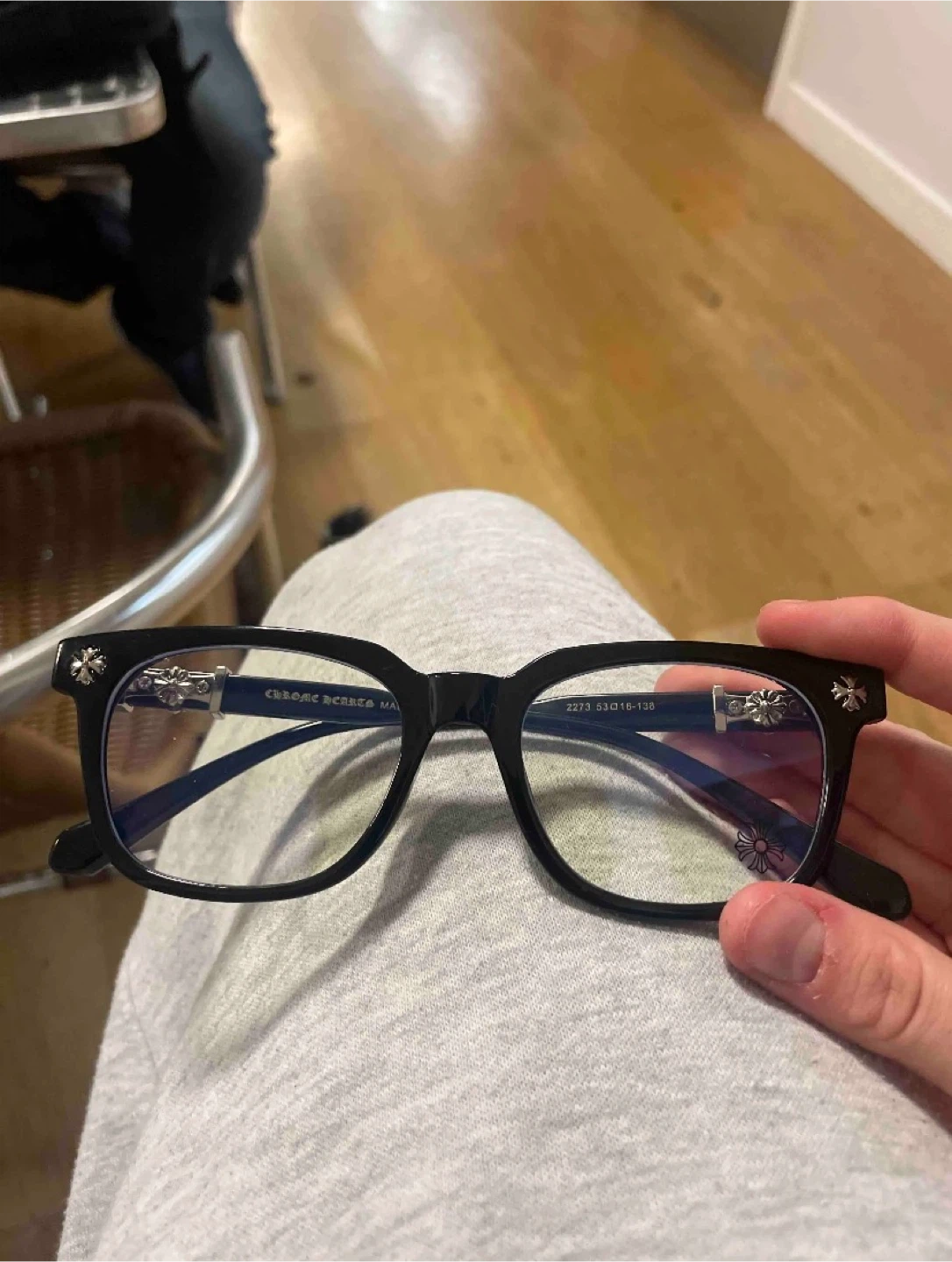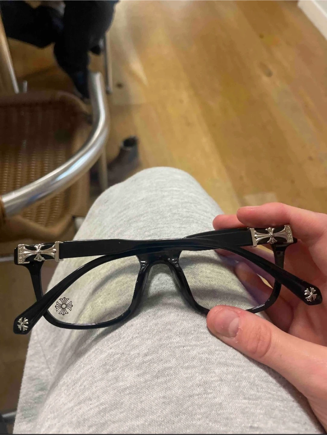 Selling a pair of Chrome Hearts eyeglasses! The frames are black and feature the iconic Chrome Hearts cross design. They are in great condition and ready for a new owner. Made in Italy.