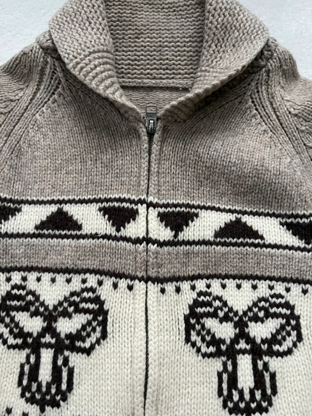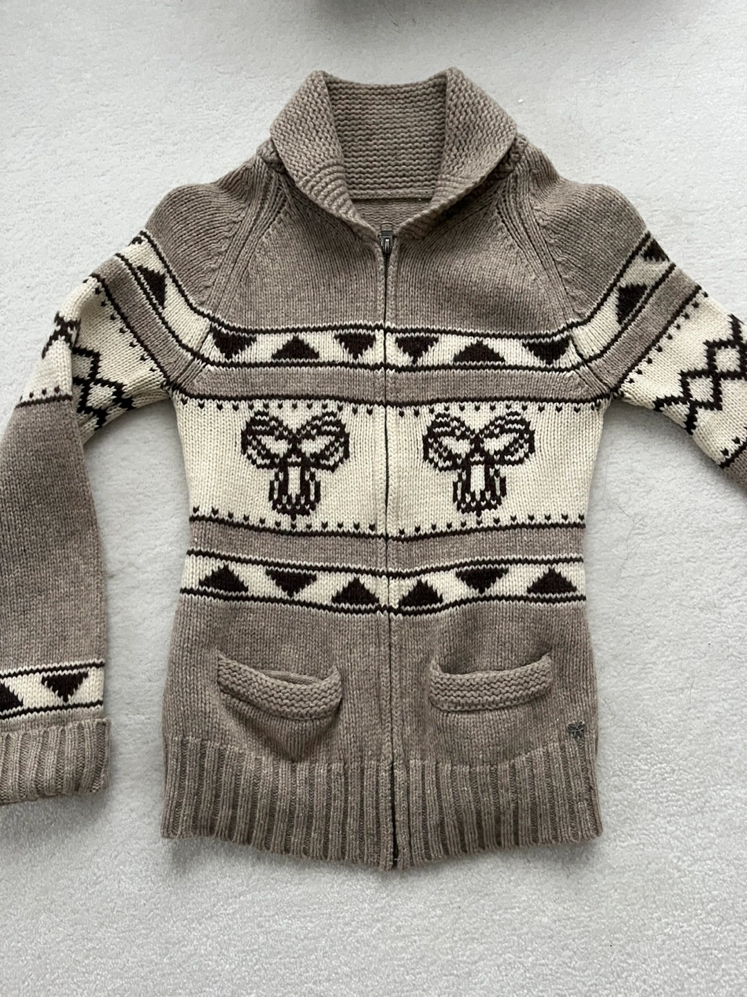 TNA 100% lambswool Patterned Knit Zip-Up Cardigan