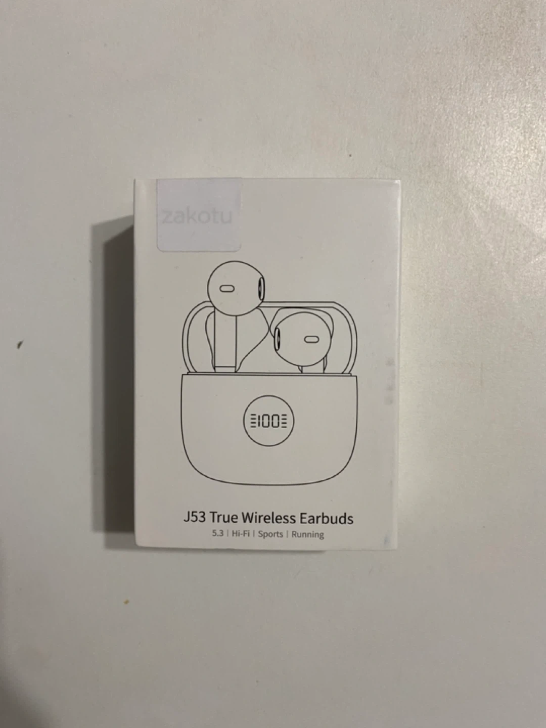 Selling a brand new pair of Zakotu J53 True Wireless Earbuds! These 5.3 Hi-Fi earbuds are perfect for sports and running. The box includes the earbuds. They have a play time of 8 hours (headset) and 32 hours (charging case), and a charging time of 1 hour (headset) and 1.5 hours (charging case)