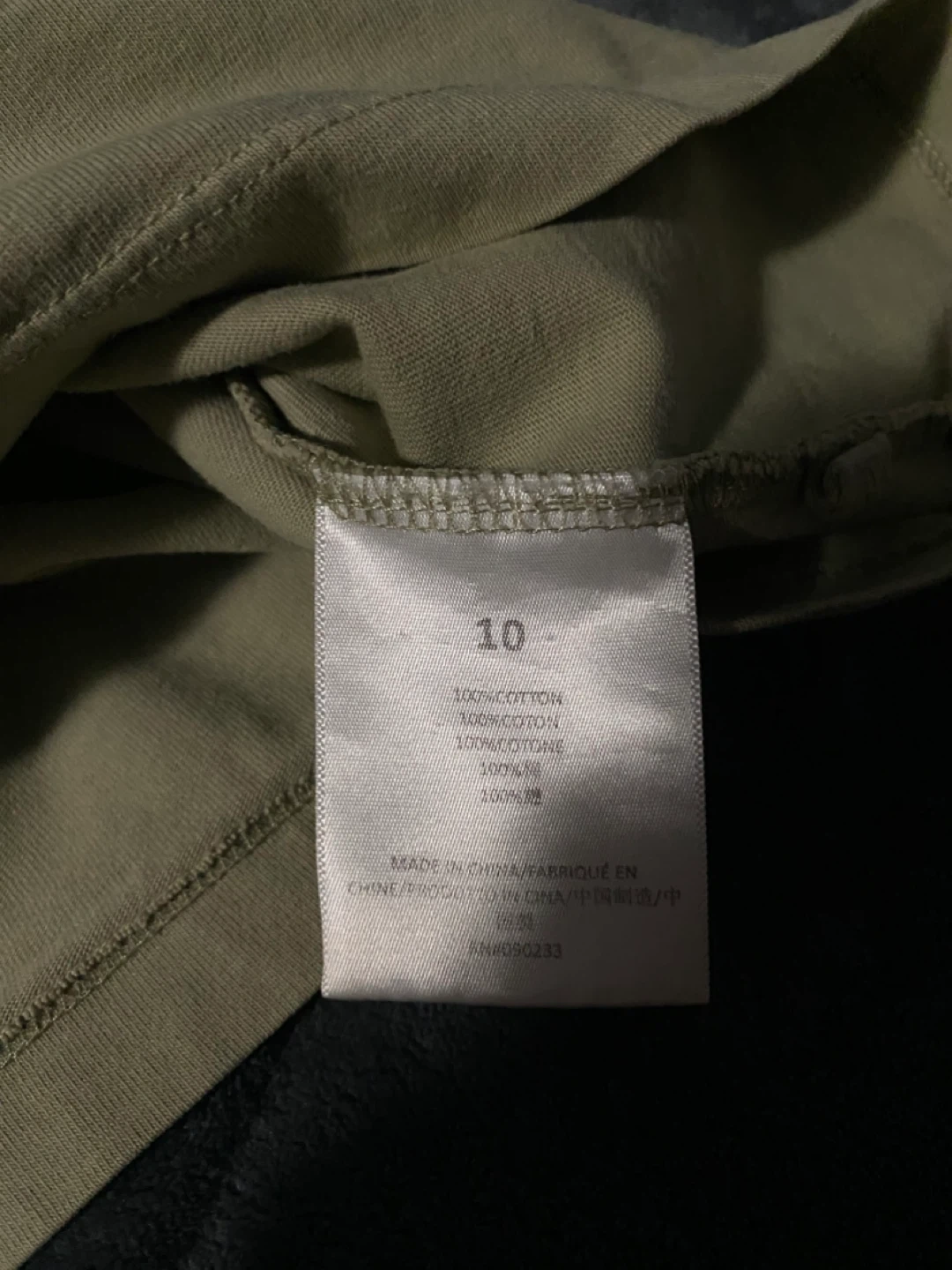 Here's an authentic Essentials Fear of God T-shirt in size 10. It is made of 100% cotton.