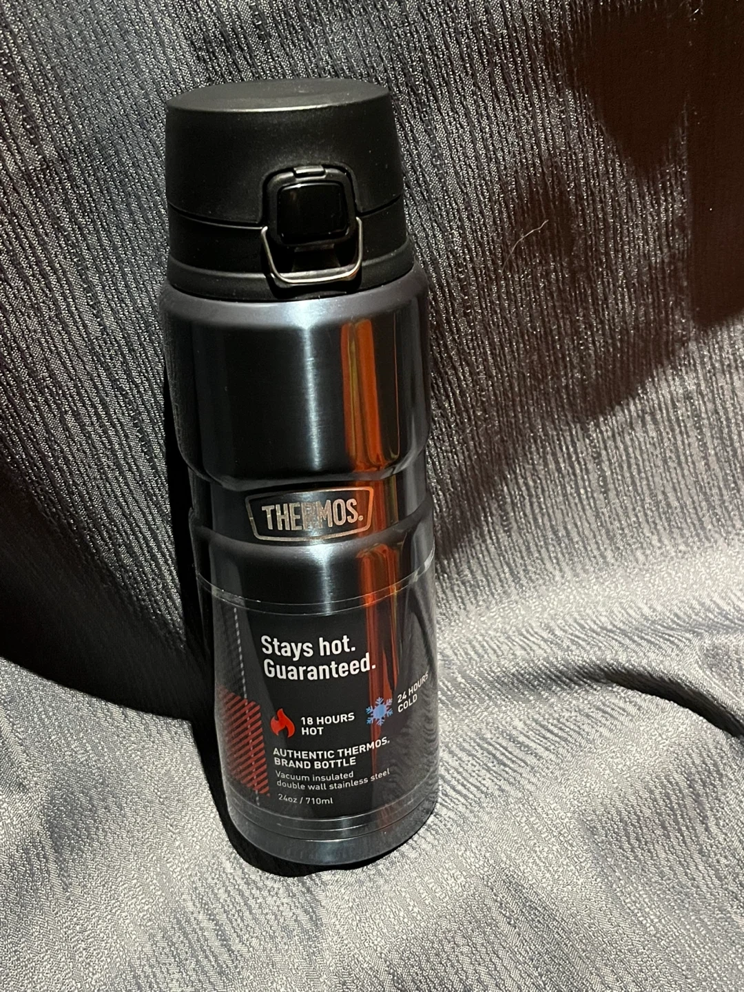 Selling a Thermos container that keeps drinks hot for 18 hours or cold for 24 hours! It's vacuum insulated stainless steel and holds 24oz / 710ml