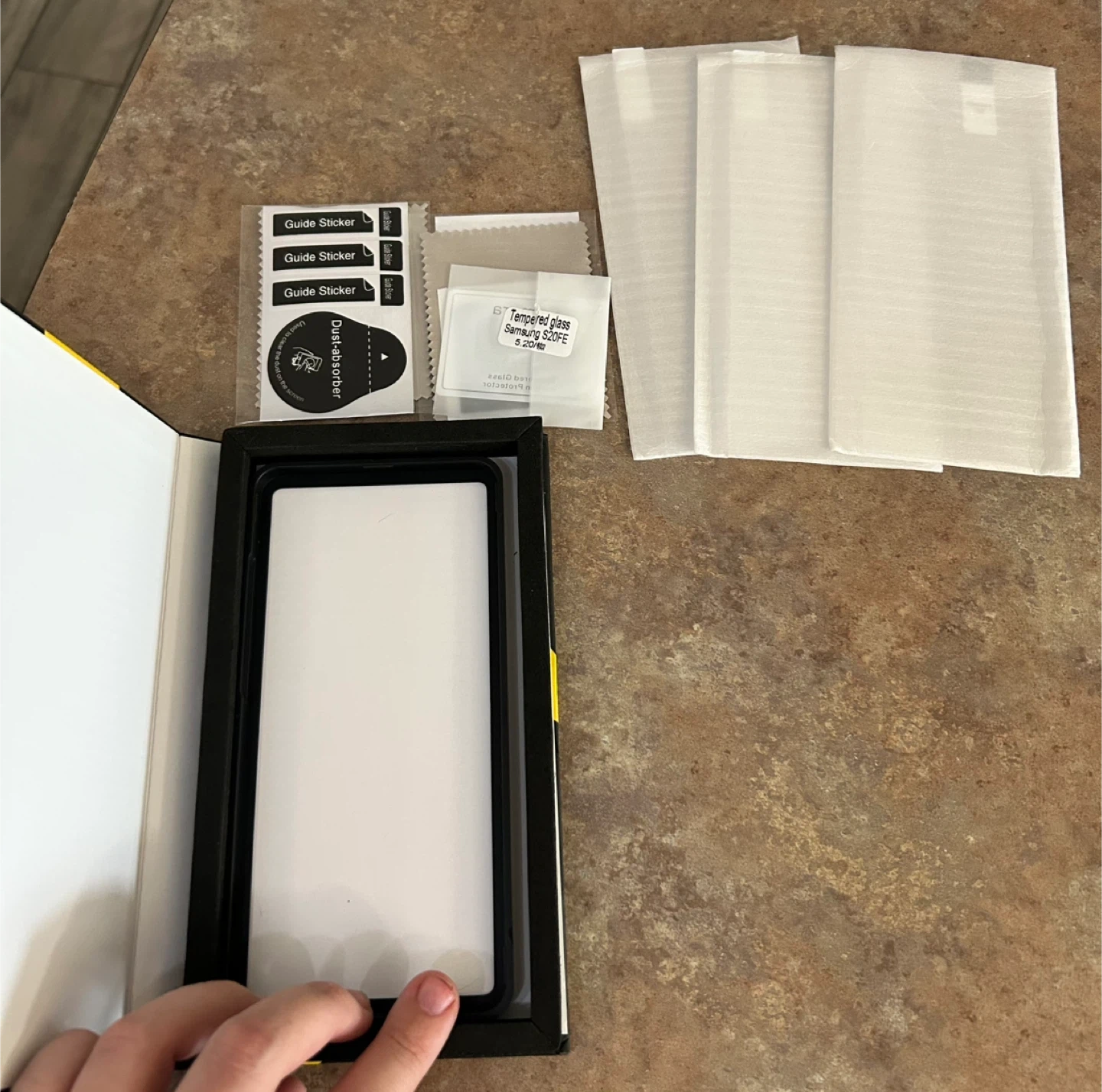 Selling a brand new TQLGY tempered glass screen protector kit for a Samsung Galaxy S20 FE. 3Pcs.
