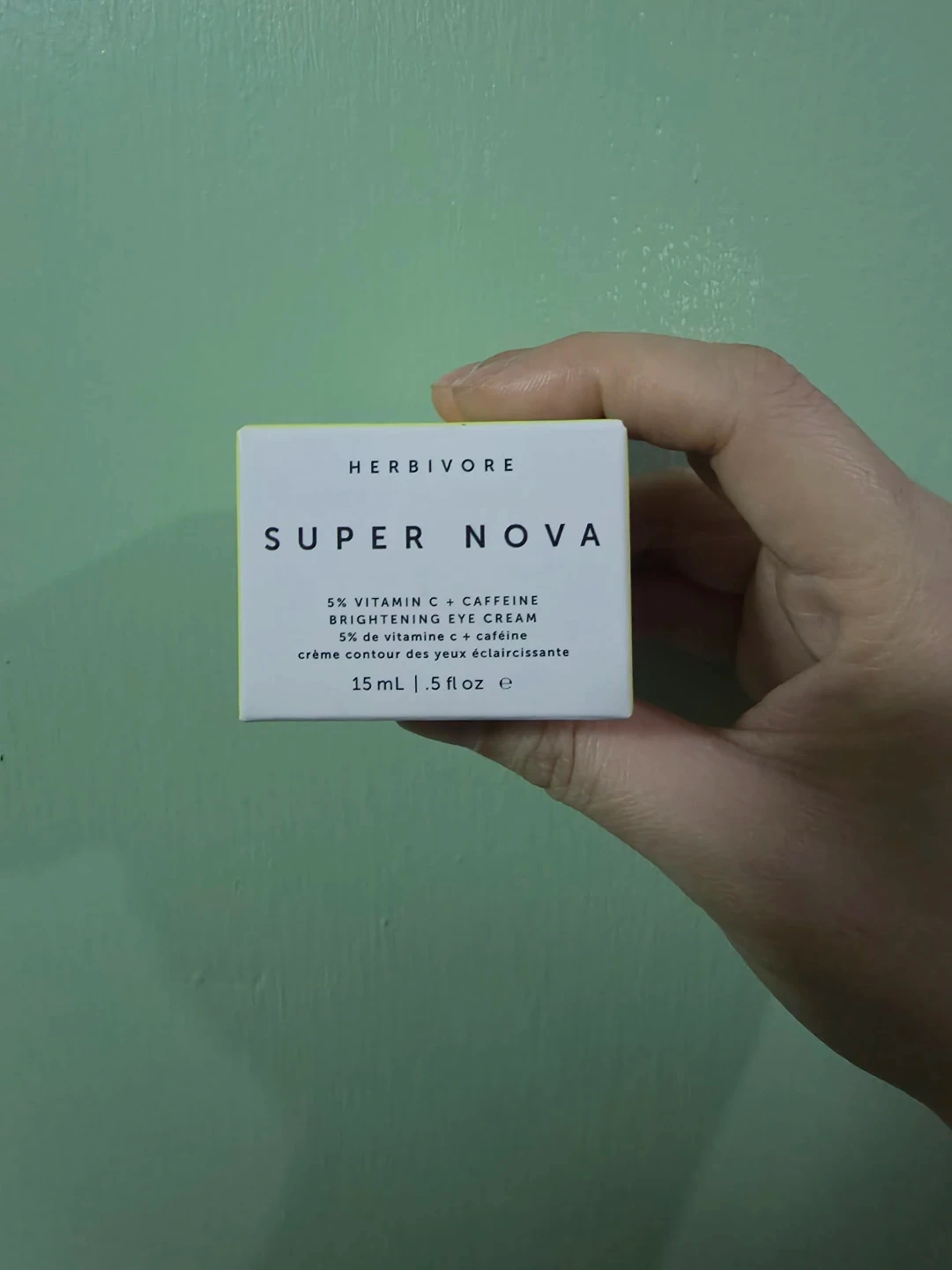 NEW Herbivore Super Nova 5% Vitamin C + Caffeine Brightening Eye Cream. This eye cream comes in a 15 mL / .5 fl oz size. It's a brightening eye cream that combines 5% THD vitamin C with caffeine to improve the look of dark circles and visibly reduce the appearance of wrinkles. The multi-tasking formula hydrates and instantly color corrects.