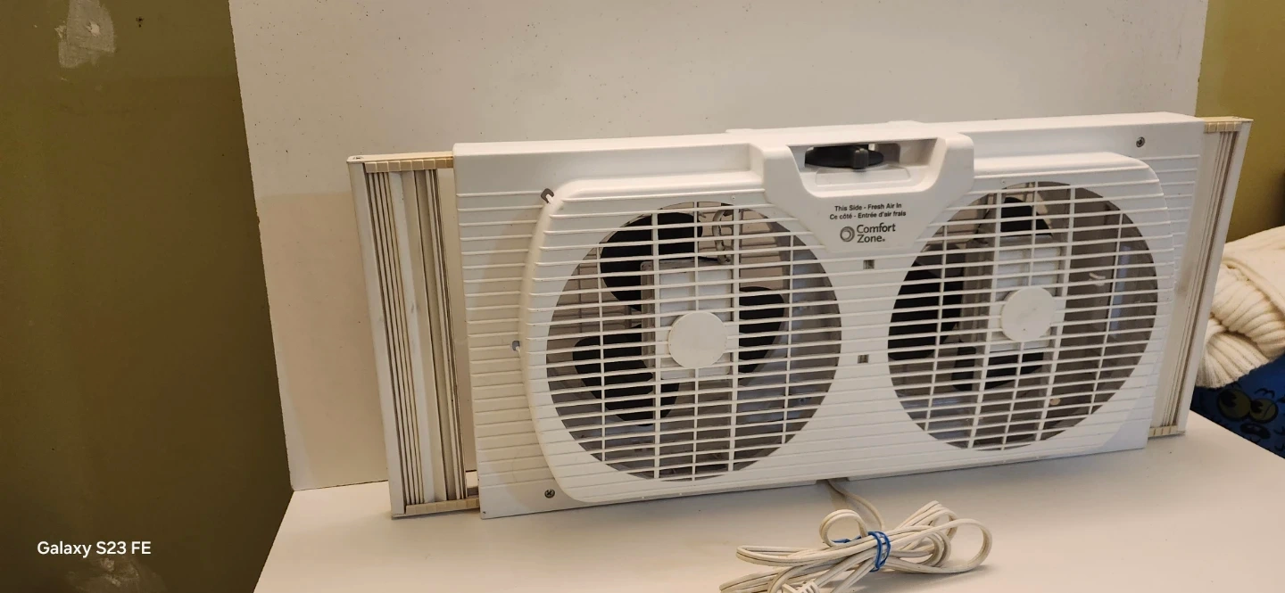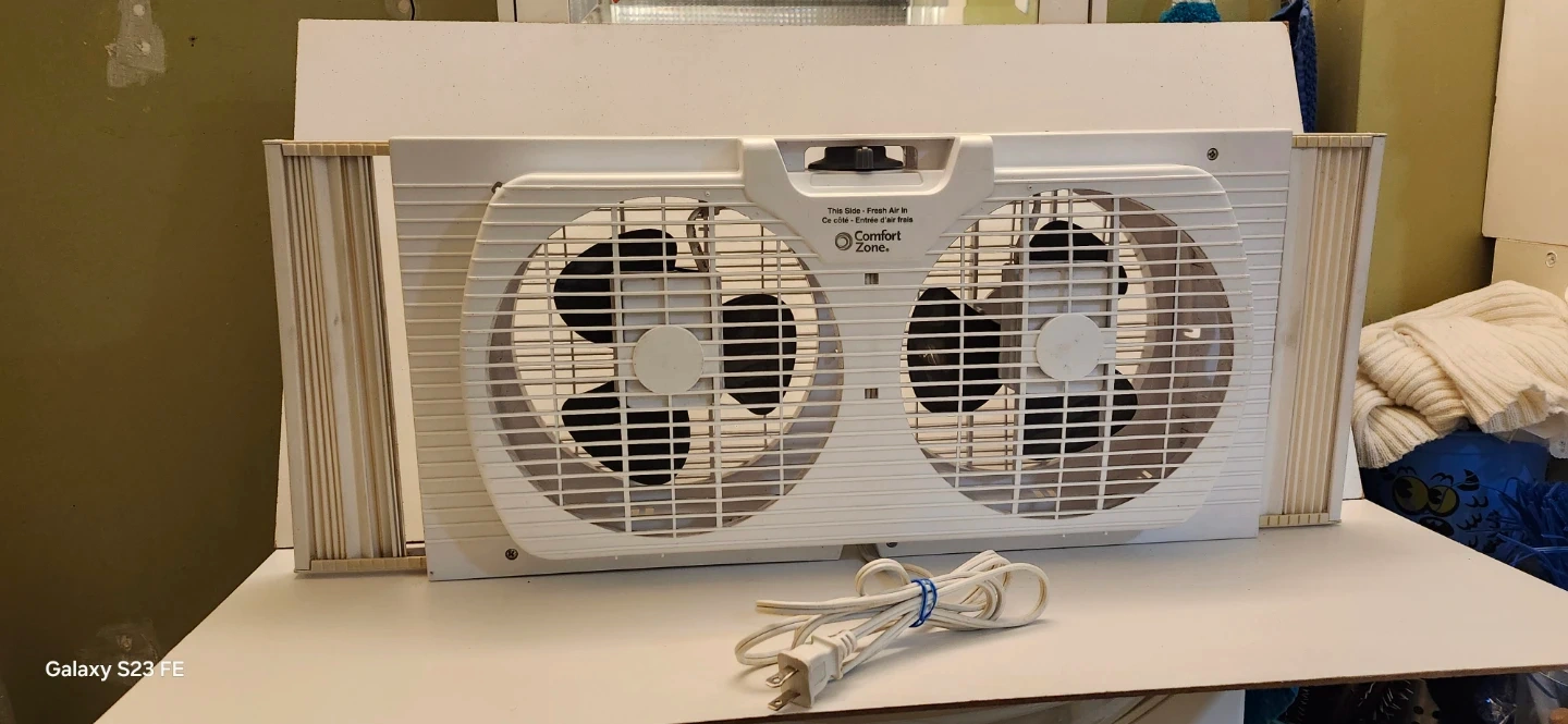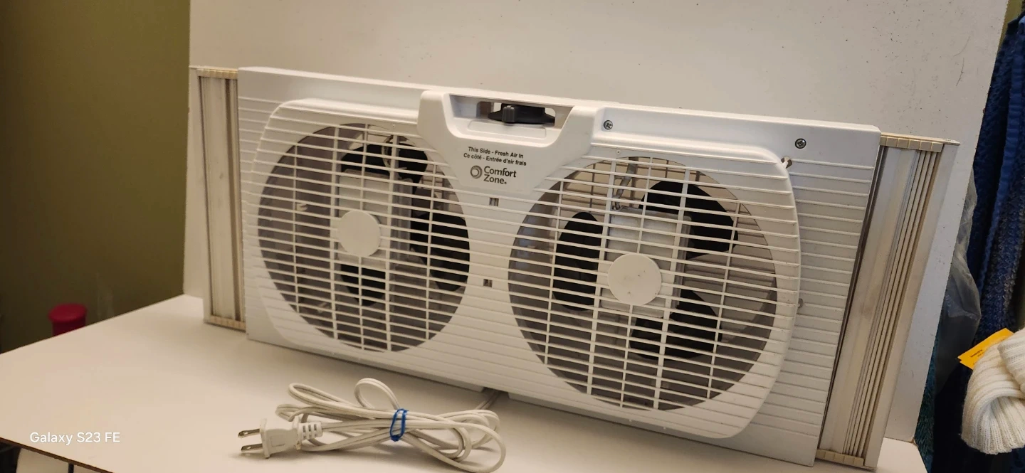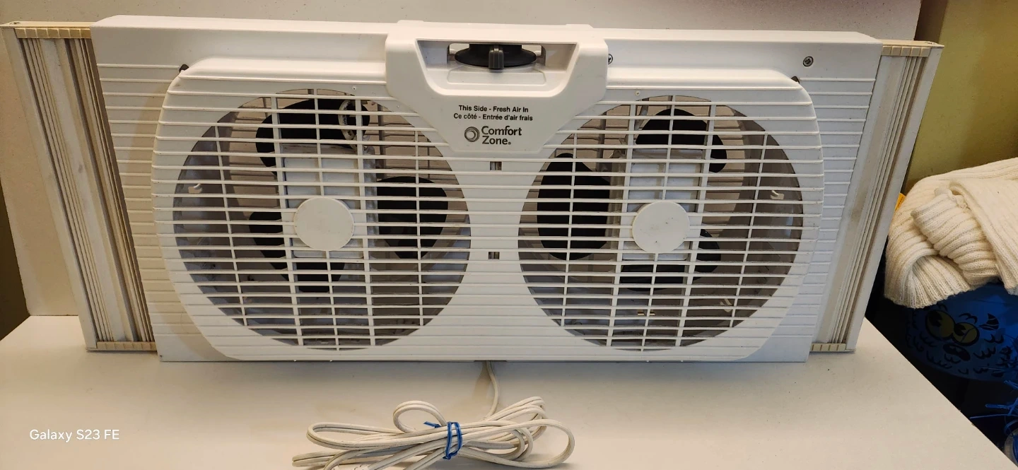 Used excellent working condition Selling a Comfort Zone twin window fan! It's perfect for bringing fresh air into your home. In good used condition and ready to go. 11 inches × 22 inches to 32 inches wide open