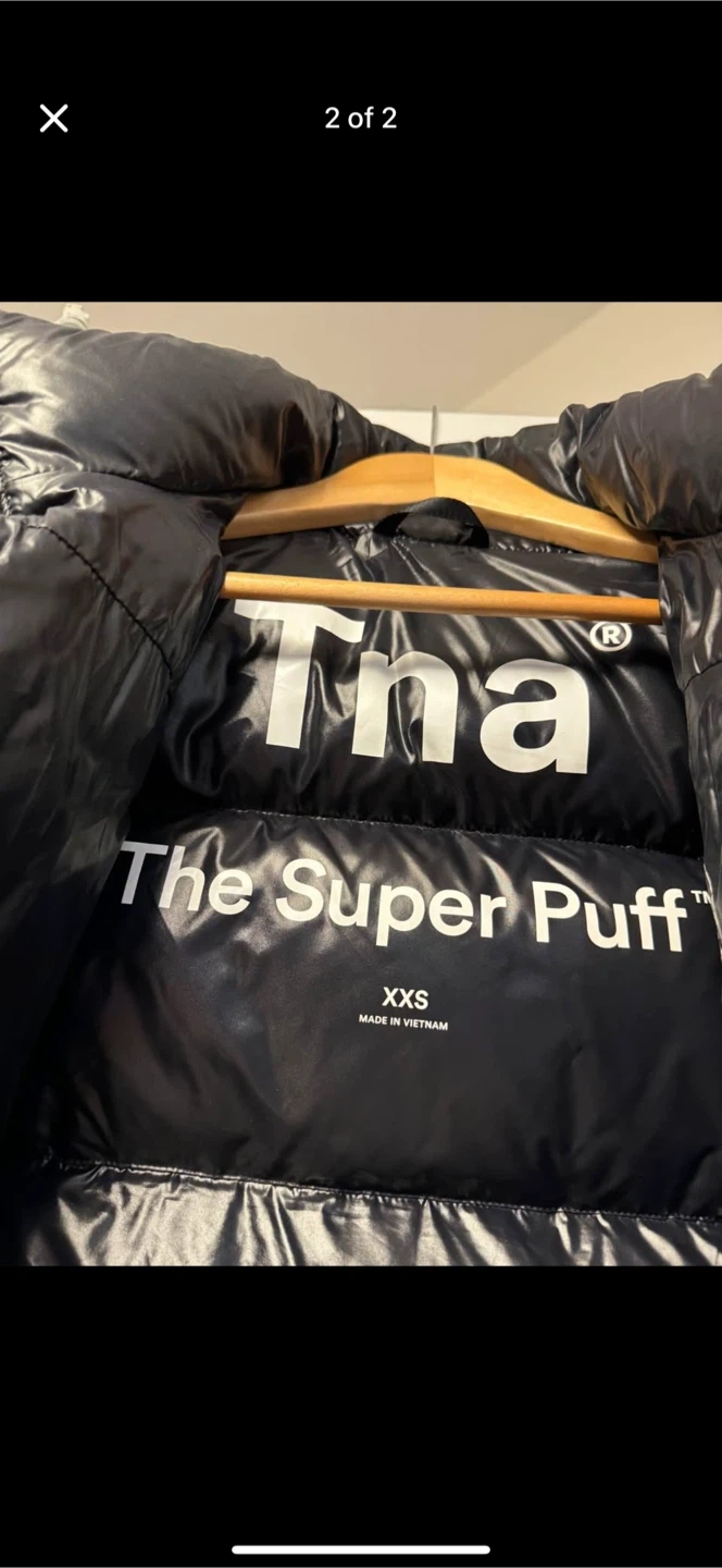 Selling a TNA The Super Puff in size XXS. It's a stylish and cozy puffer jacket in black. Perfect for staying warm during the colder months!