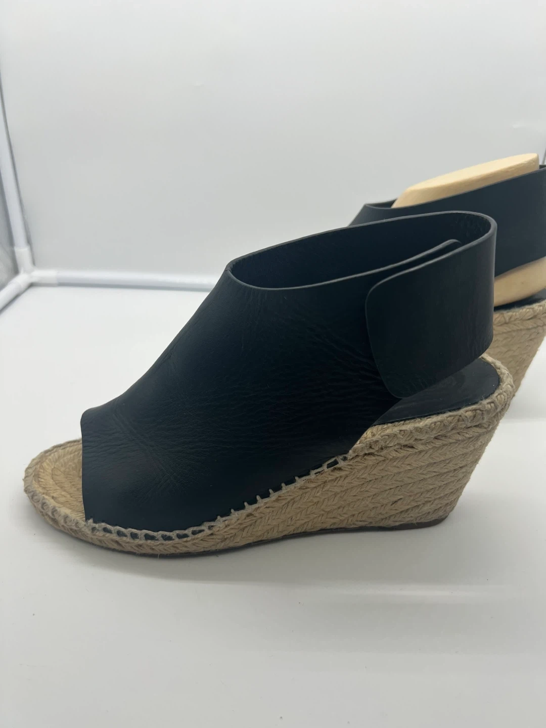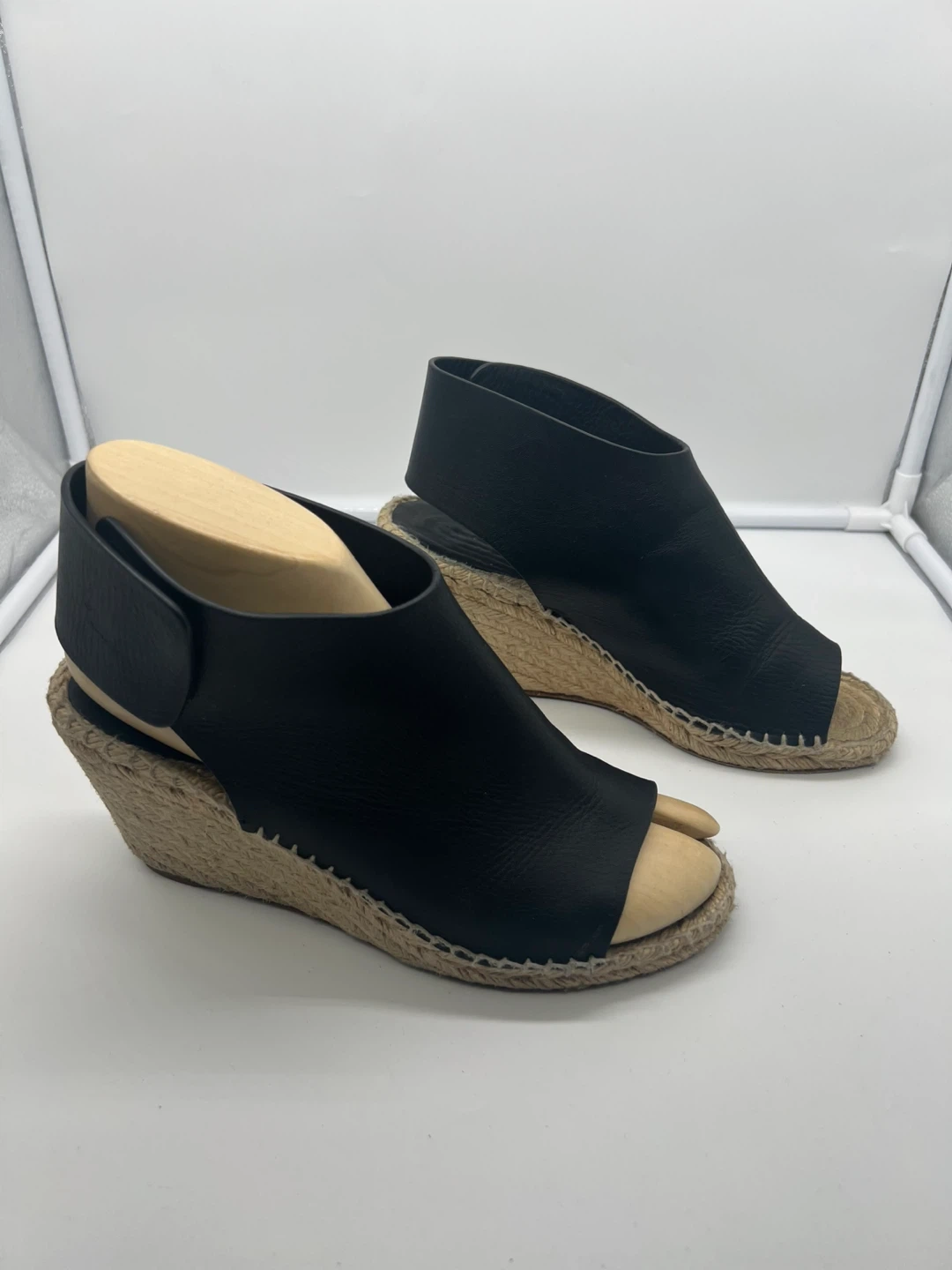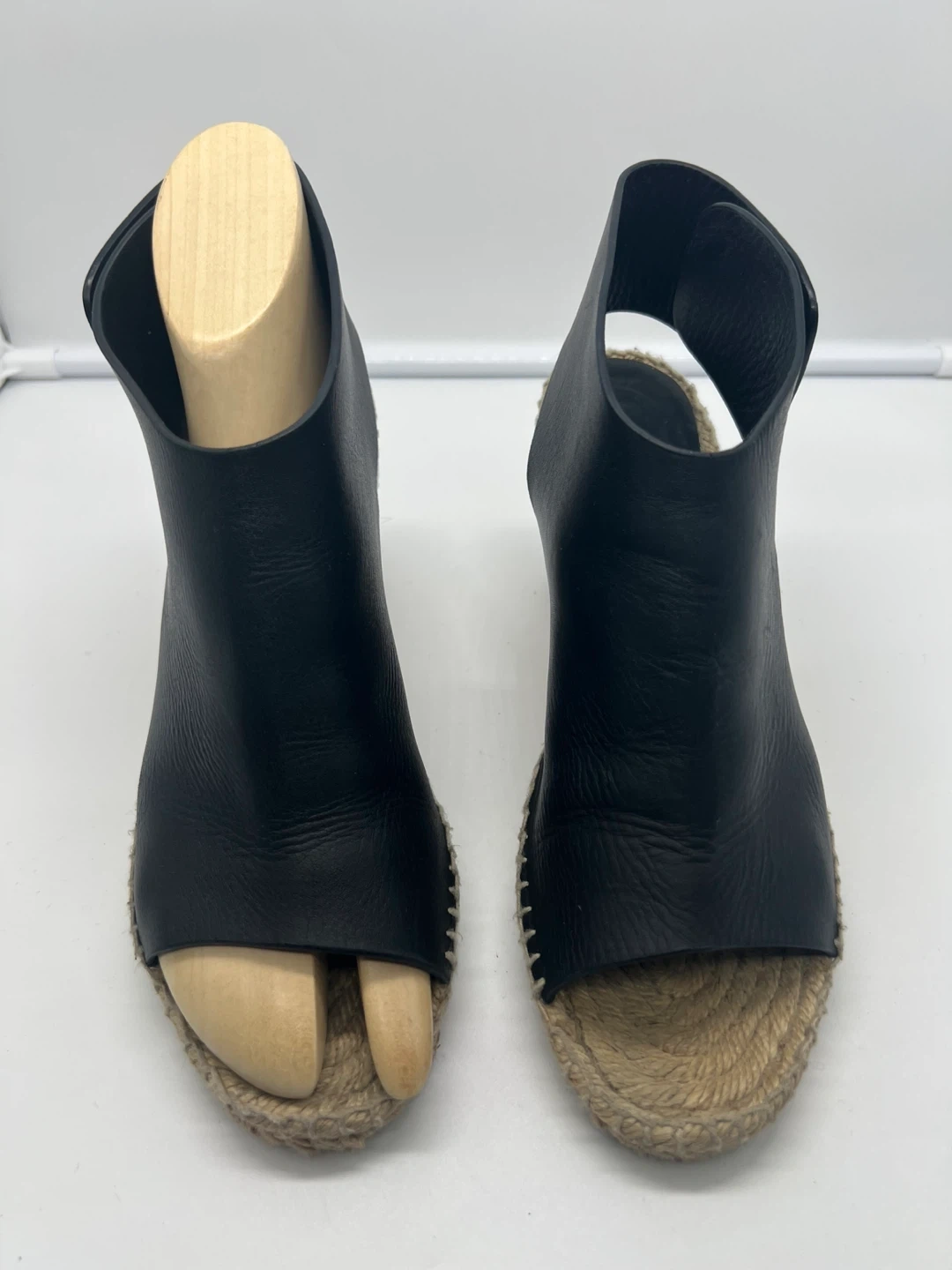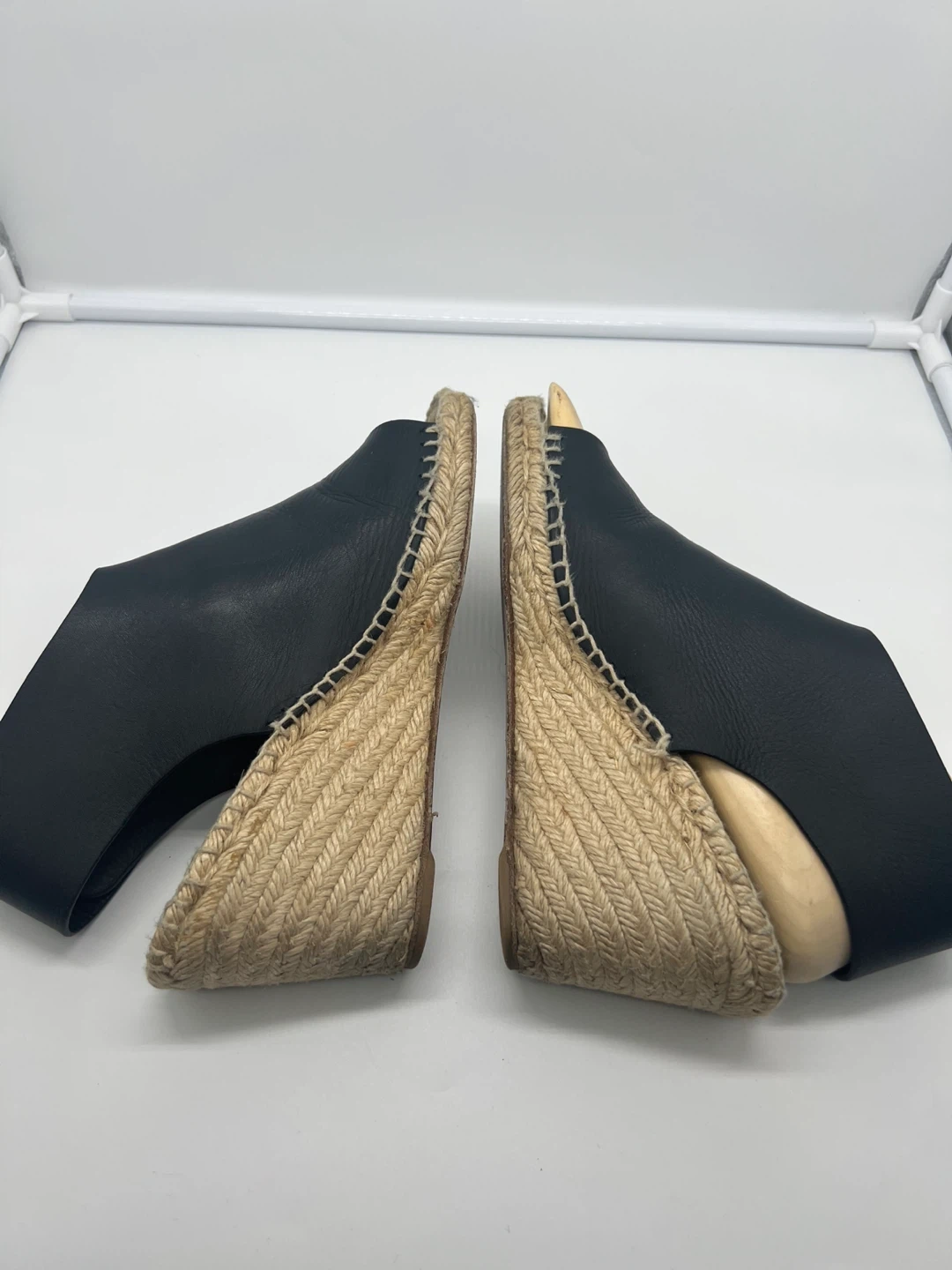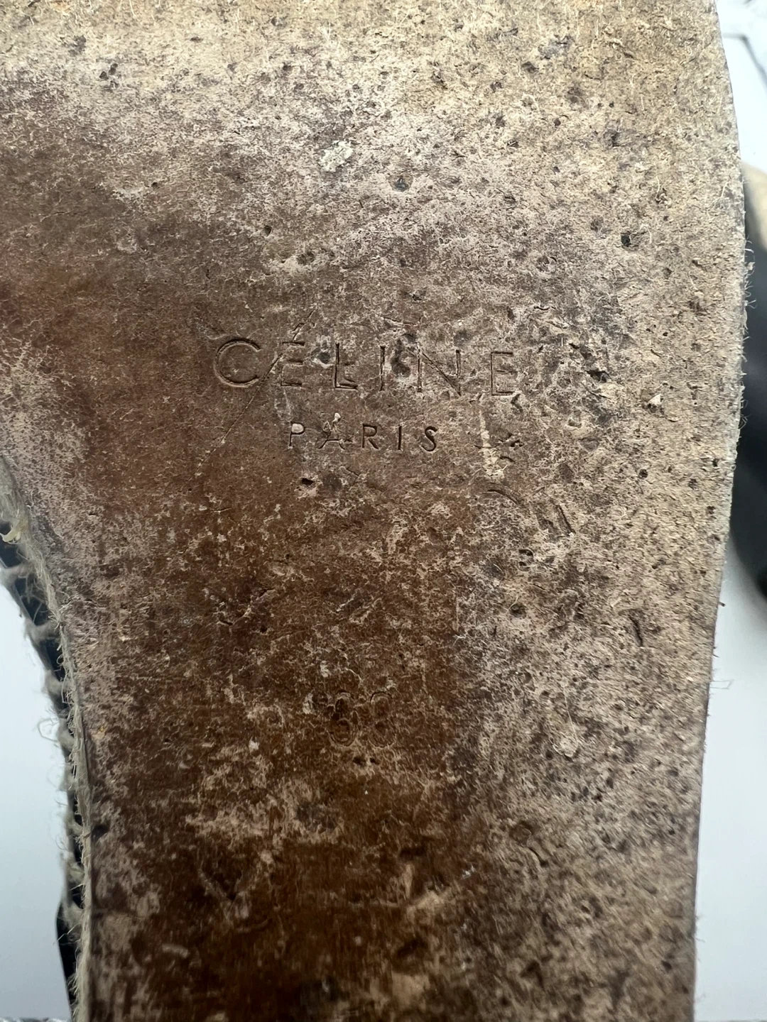 CÉLINE PARIS Black Leather Jute Espadrille Heel Wedges sz 38
