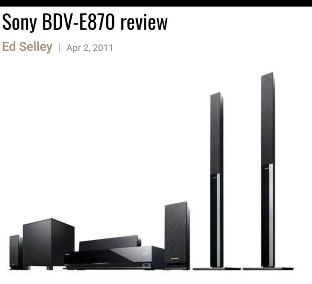 For sale is a used BDV-E870 Sony Home Theatre System. This system features a Blu-ray Disc/DVD player and multiple speakers for immersive sound. The set is in good working condition.
