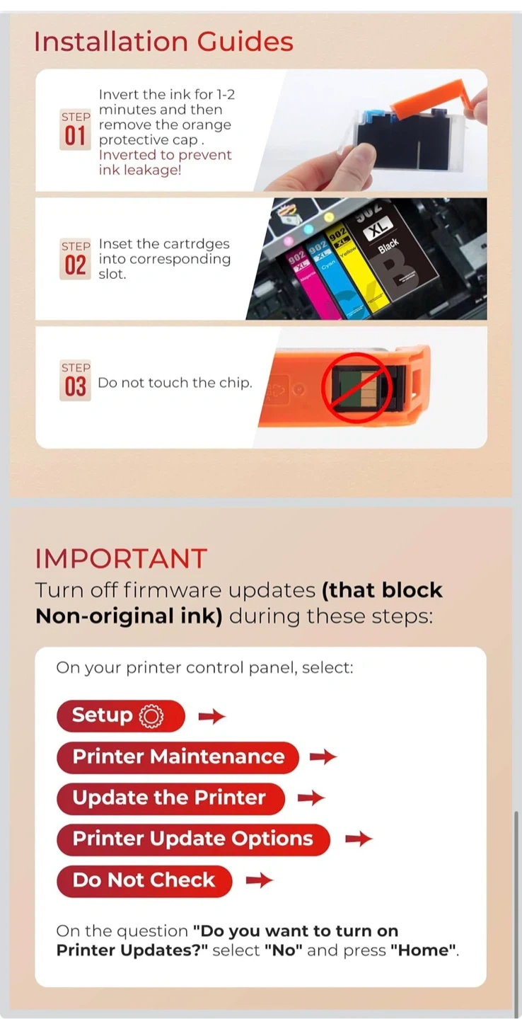 902XL Ink Cartridges for HP Printers Replacement for HP 902XL Ink Cartridges Combo Pack Work with Officejet Pro 6978 6968 6970 6975 Officejet 6958 6956 6954 Printers (4 Pack:Black Cyan Magenta Yellow)