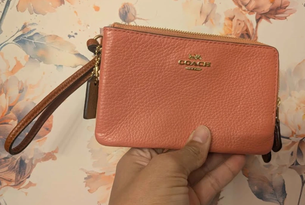 Coach Wristlet Wallet - Coral/Tan
