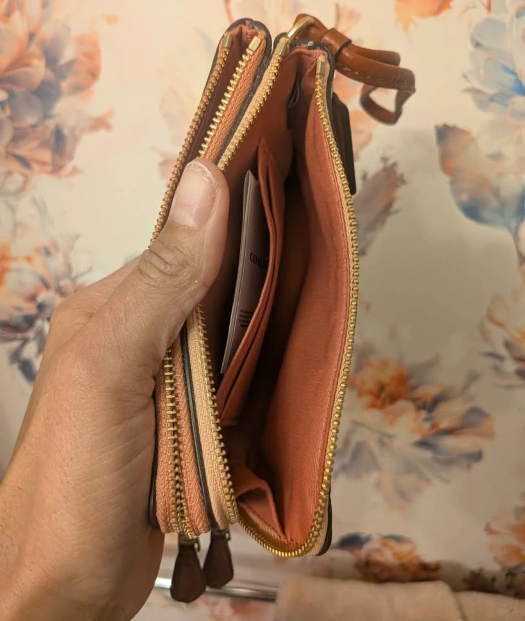 Selling a cute Coach wristlet wallet in a lovely coral and tan colour combination! It's in great condition and ready for a new owner. Perfect for keeping your essentials organized while on the go