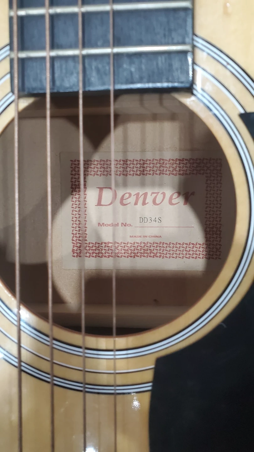 Selling a Denver acoustic guitar. It shows signs of wear and use, but could be a great project for someone interested in restoration or learning to play. All that you need to fix is the strings and your good to go!