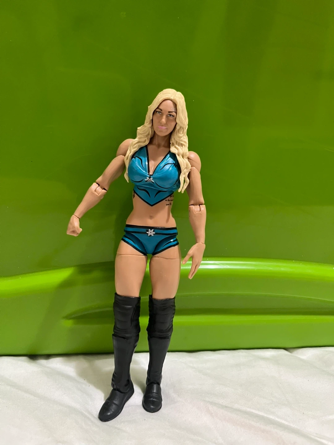Selling a WWE Charlotte Flair action figure. It features her signature blonde hair and blue ring attire. Great for any wrestling fan or collector!