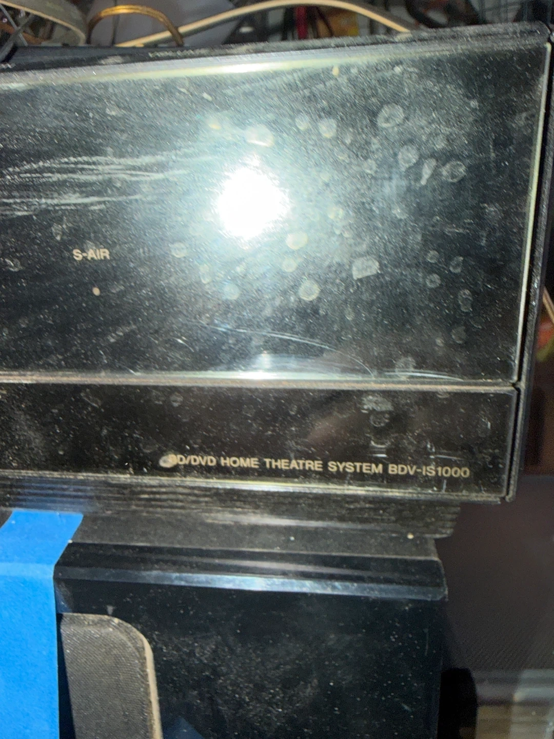 Selling a used Sony BD/DVD Home Theatre System BDV-IS1000. It has some signs of use, but it is still functional. It includes a remote and various wires and mini speakers. Working fine. Some issues with opening and closing cd tray.