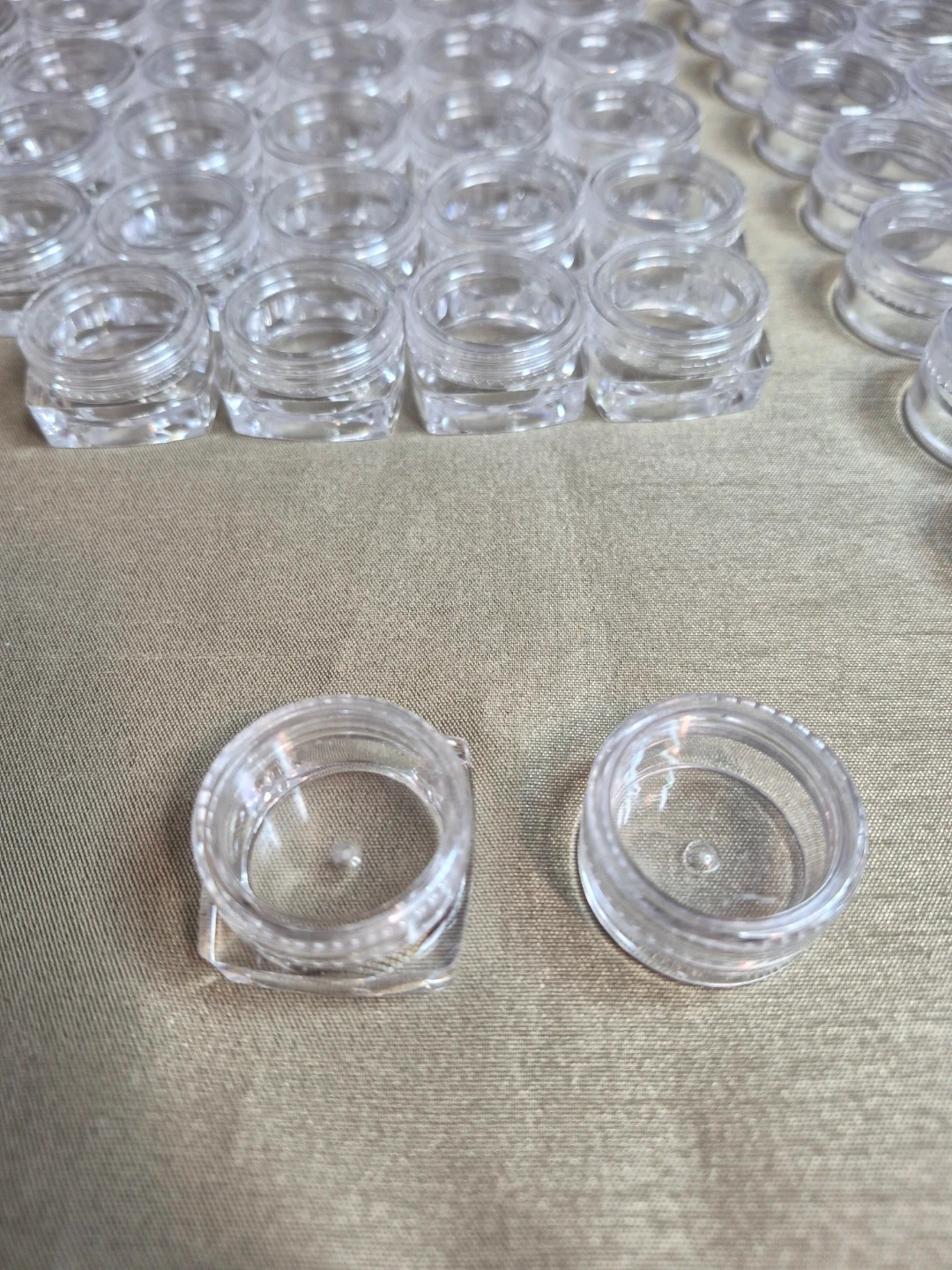 Mix Misc Lot of 41+ 39 = 70 Total 5ml Clear Plastic Sample Containers with Lids Brand New Leftovers 2 Styles - Selling all 70 as a lot please see all pictures