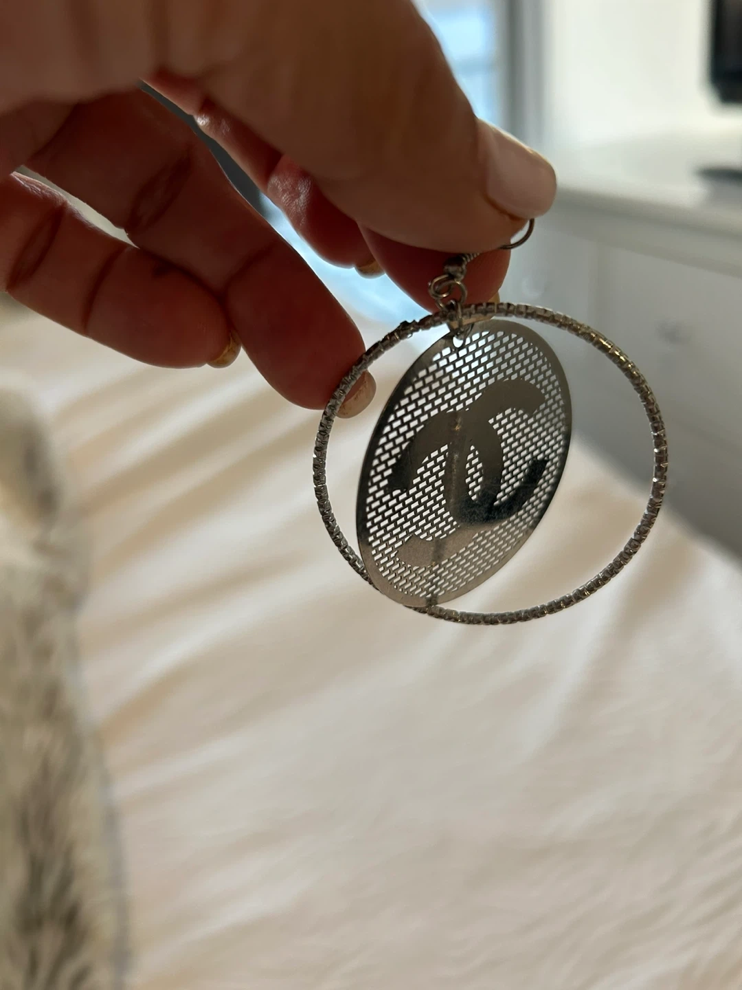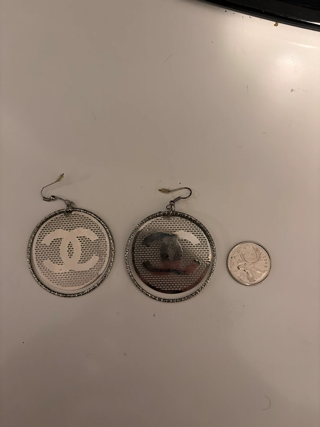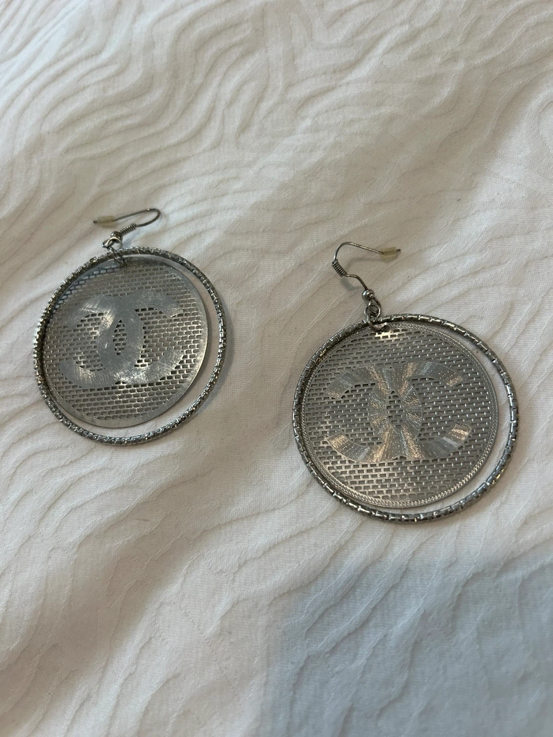 Selling a pair of Chanel earrings. They are silver in colour and feature the iconic Chanel logo. They are in great condition!