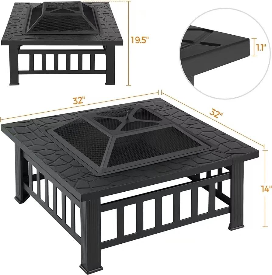 This square metal fire pit table is perfect for your backyard or patio! It measures 32" x 32" with a height of 19.5".