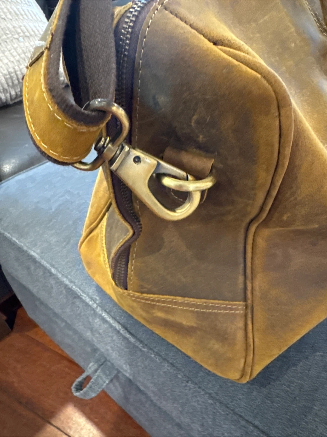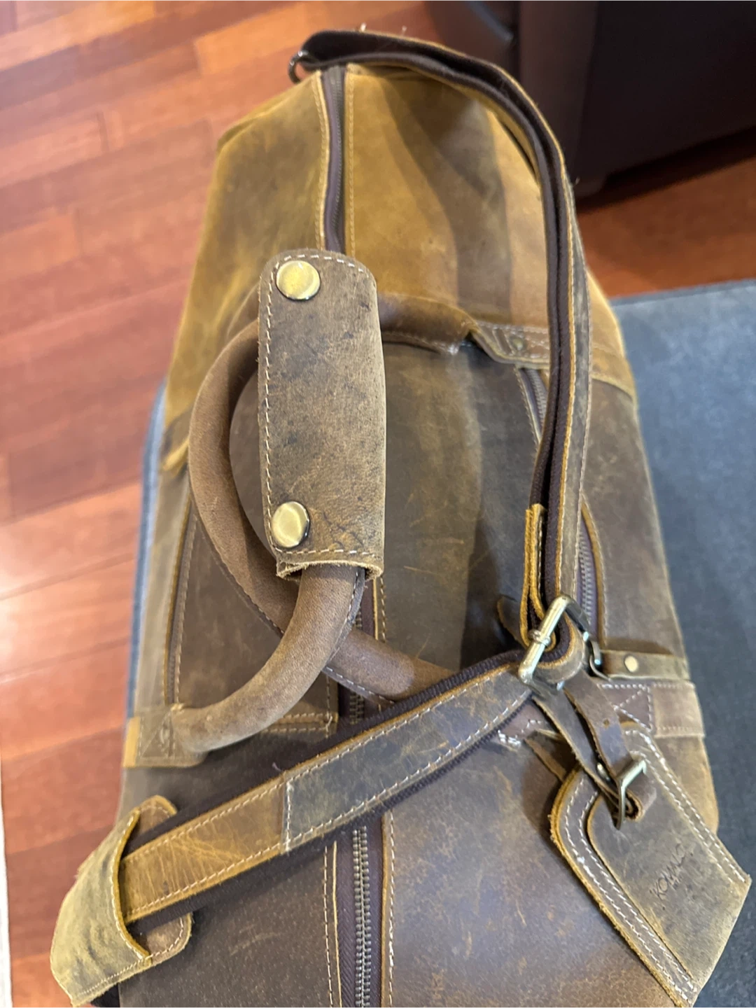 Distressed Tan Leather Duffle Bag
