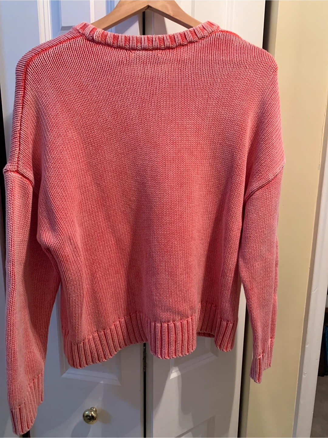Cozy red sweater from GAP, perfect for layering! It's a size large and made from a comfortable 100% cotton. The knit texture adds a nice touch to any outfit and has a red/white knit. It is a chunky sweater that hits just below the waist. Beautiful textured cuffs, neckline and waist area. Regularly sells for $70-$80! This is a great piece for your winter wardrobe!