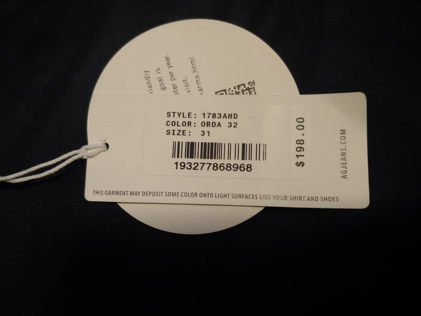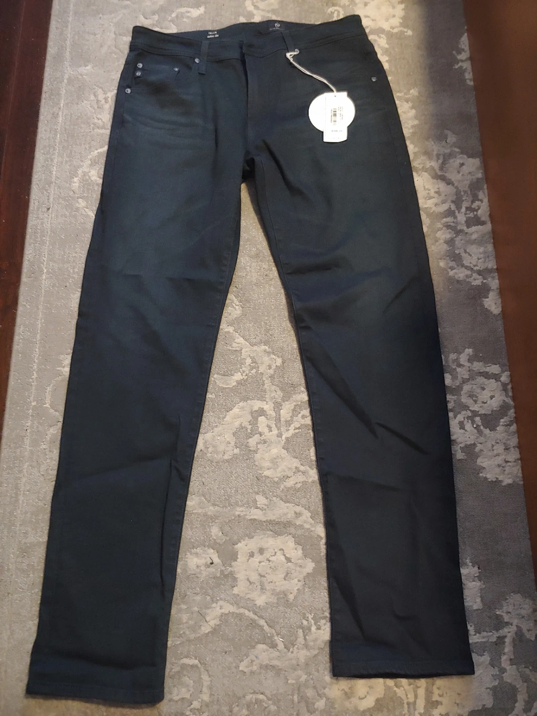 Selling a pair of mens new AG Tellis modern slim jeans in size 31x 32. The colour is Orda 32. This garment was produced using recycled water. Retail price for $198 US. They have a worn soft feel to them, which makes them very comfortable, but they were not worn. New with tags.