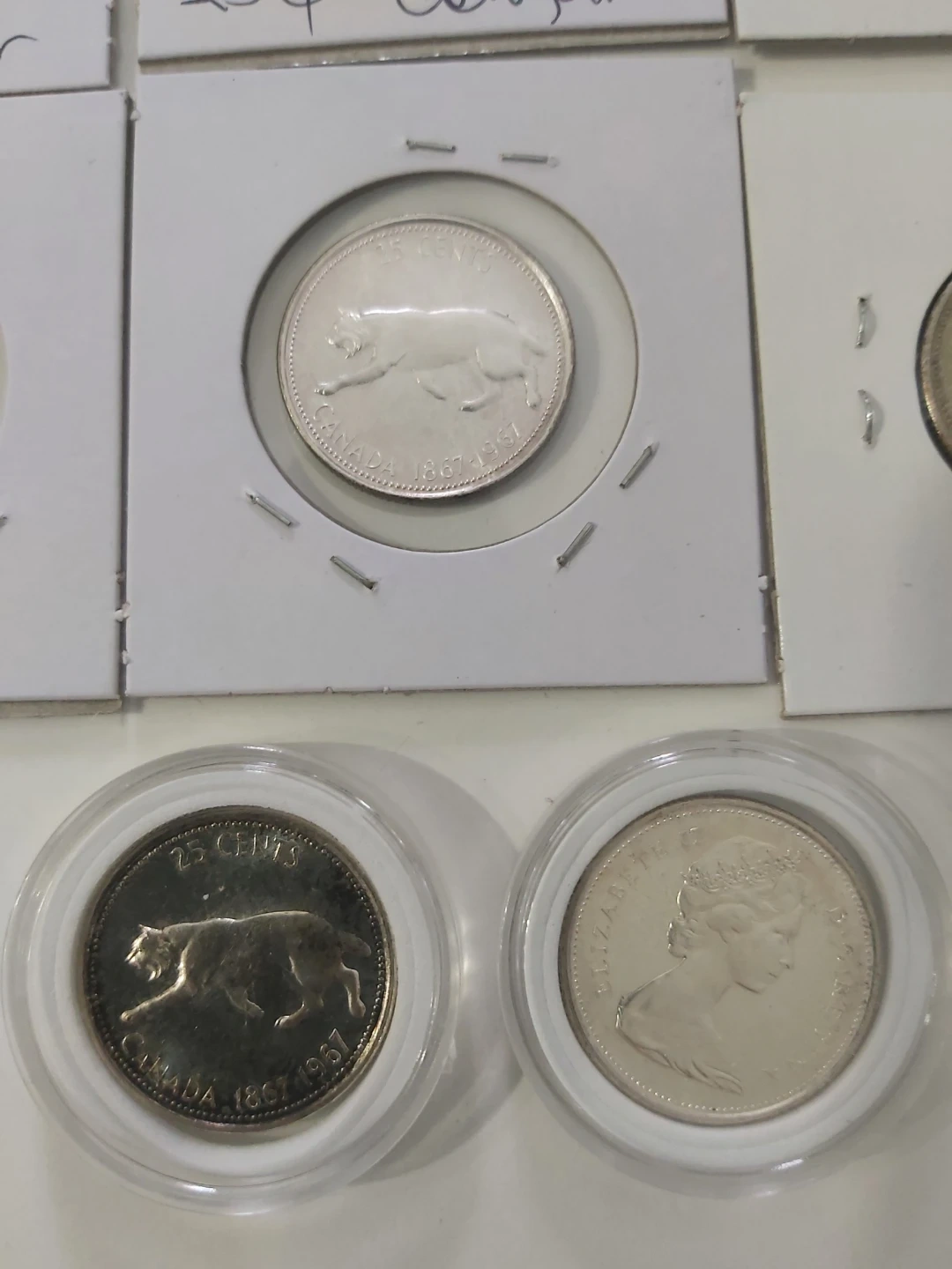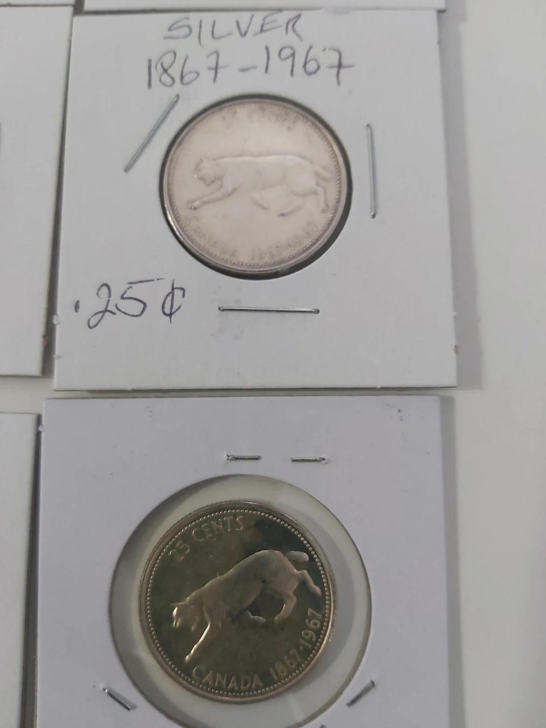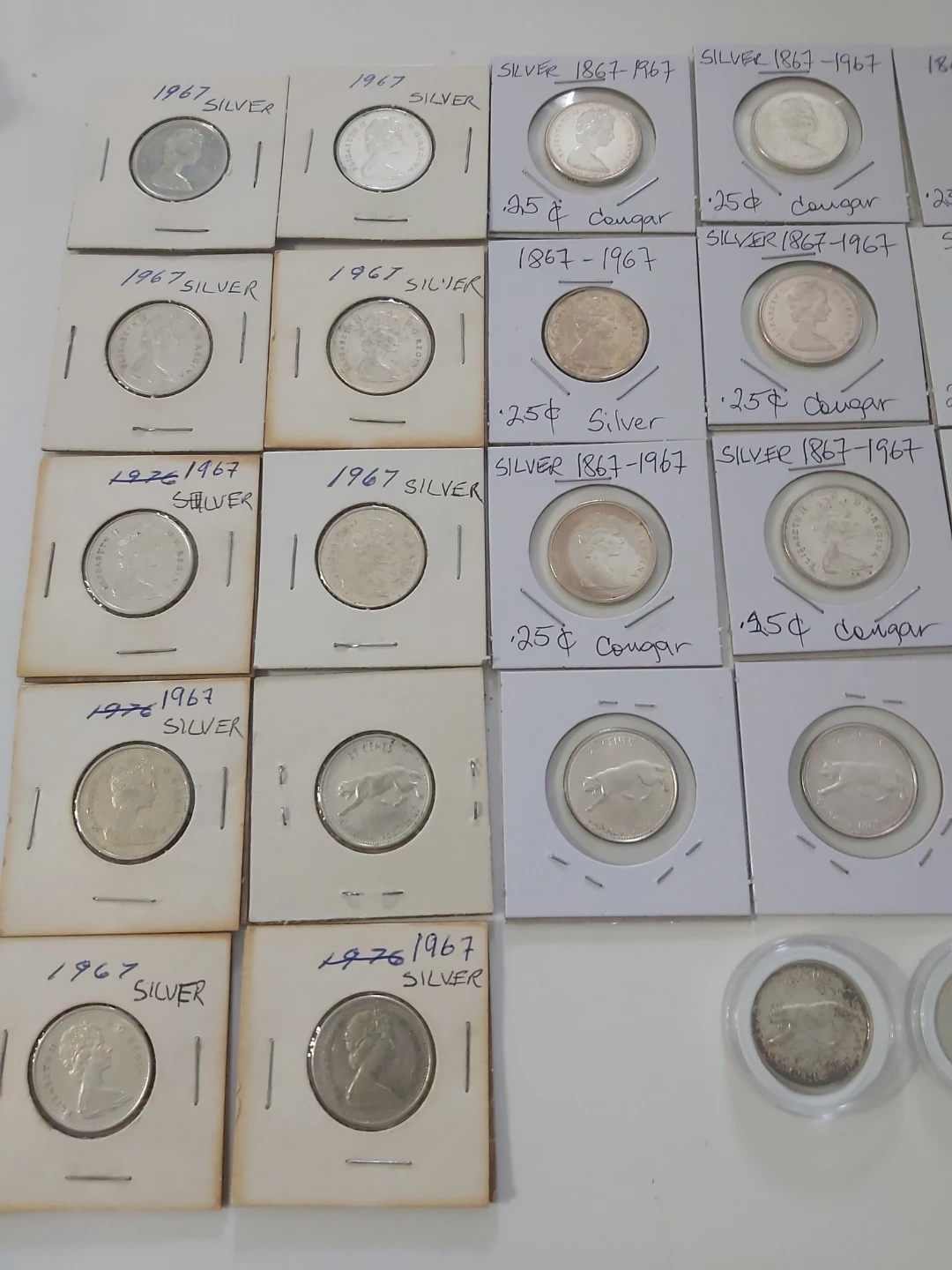 Selling a collection of vintage Canadian silver coins. These are 25-cent pieces from 1867-1967. They feature the Queen and a cougar design. Perfect for collectors of Canadaian History Collection, plus it's Silver content.