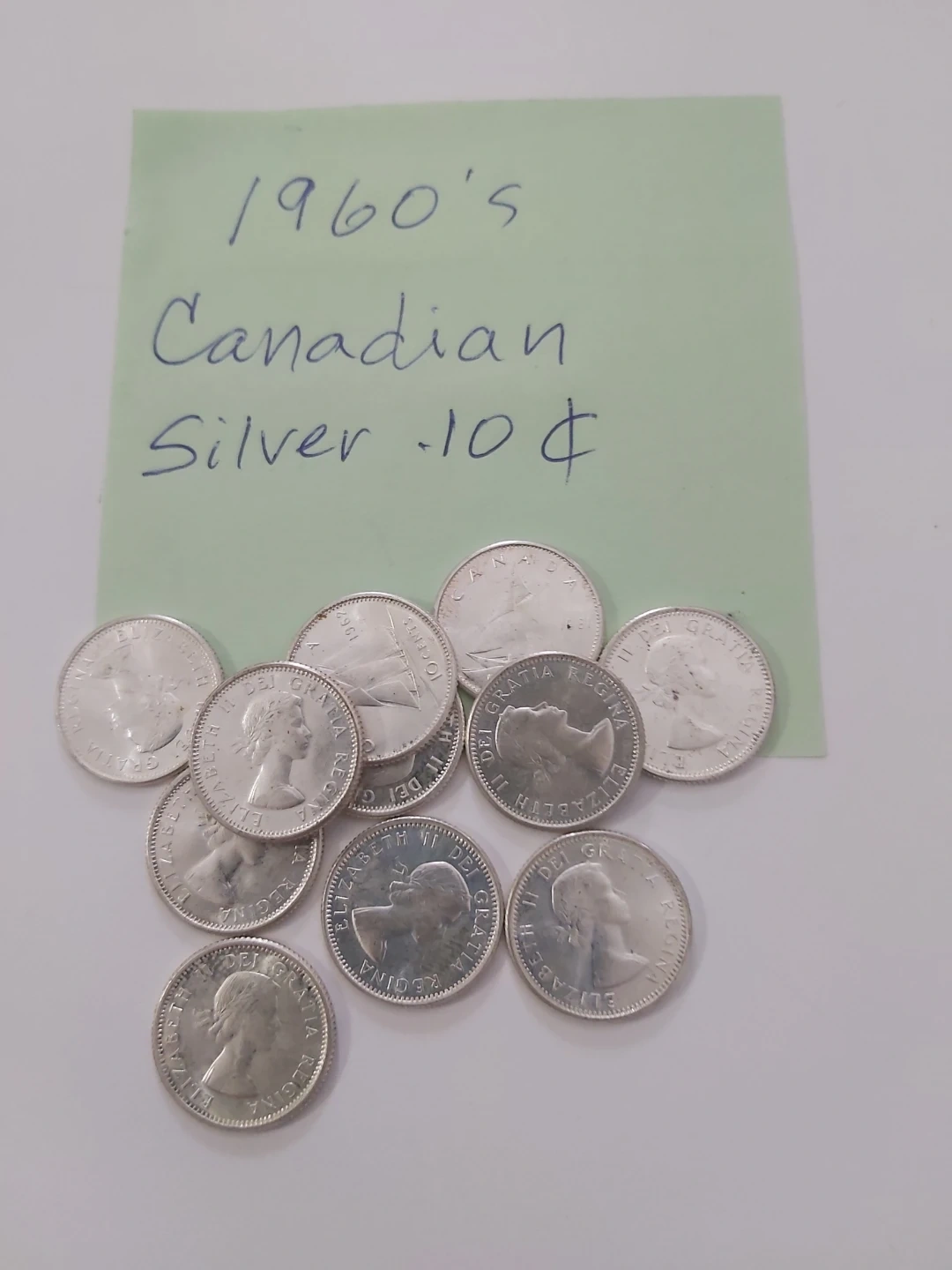 Silver Vintage Canadian 1960's 10 Cent Coins