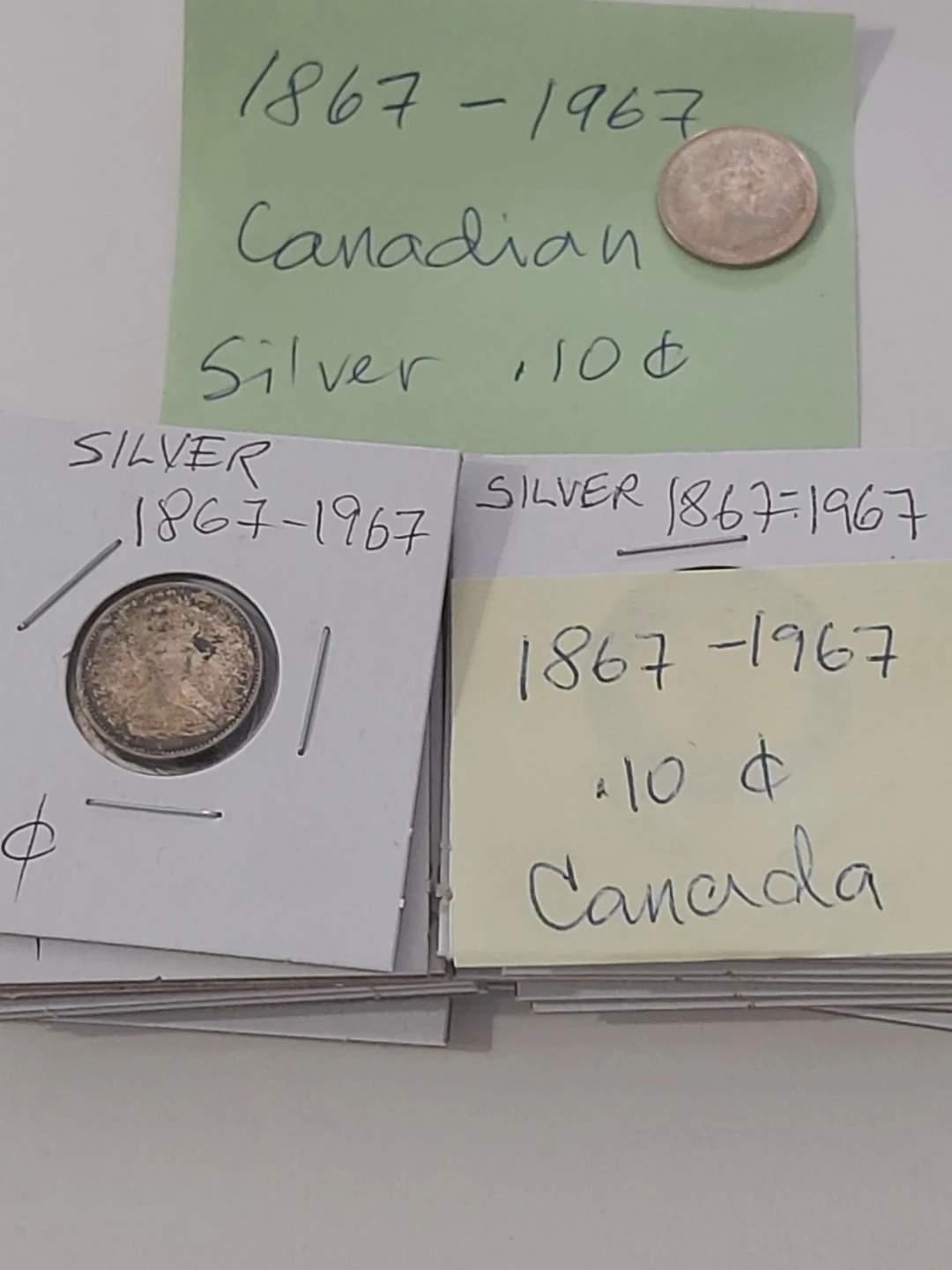 Selling a Canadian silver 10 cent coin from 1867-1967. It's a piece of Canadian history Collection, plus it's Silver content.