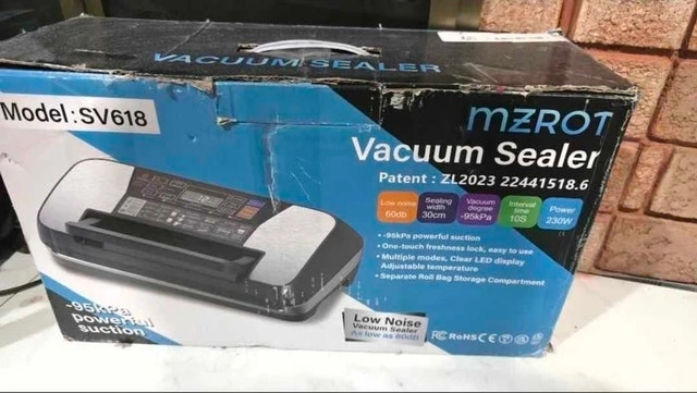 Keep your food fresh up to 5x longer with this powerful MZROT Vacuum Sealer. This is a high-performance model (SV618) designed for efficiency and ease of use in any kitchen. Key Features & Specifications: Professional Suction: Features a powerful -95kPa suction for a complete air-tight seal. High Power Performance: 230W motor with a quick 10-second interval time between seals. Quiet Operation: Designed for low noise, operating as low as 60db. Versatile Sealing: 30cm sealing width accommodates various bag sizes. Smart Controls: Multiple modes with a clear LED display and adjustable temperature settings. Built-in Storage: Includes a separate roll bag storage compartment for convenience. User Friendly: One-touch freshness lock makes it very simple to operate. Bags not included. Pick-up: Available at 220 Steeles Avenue West.