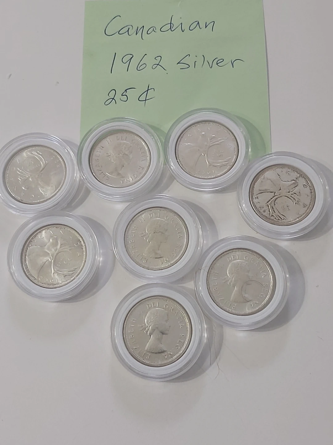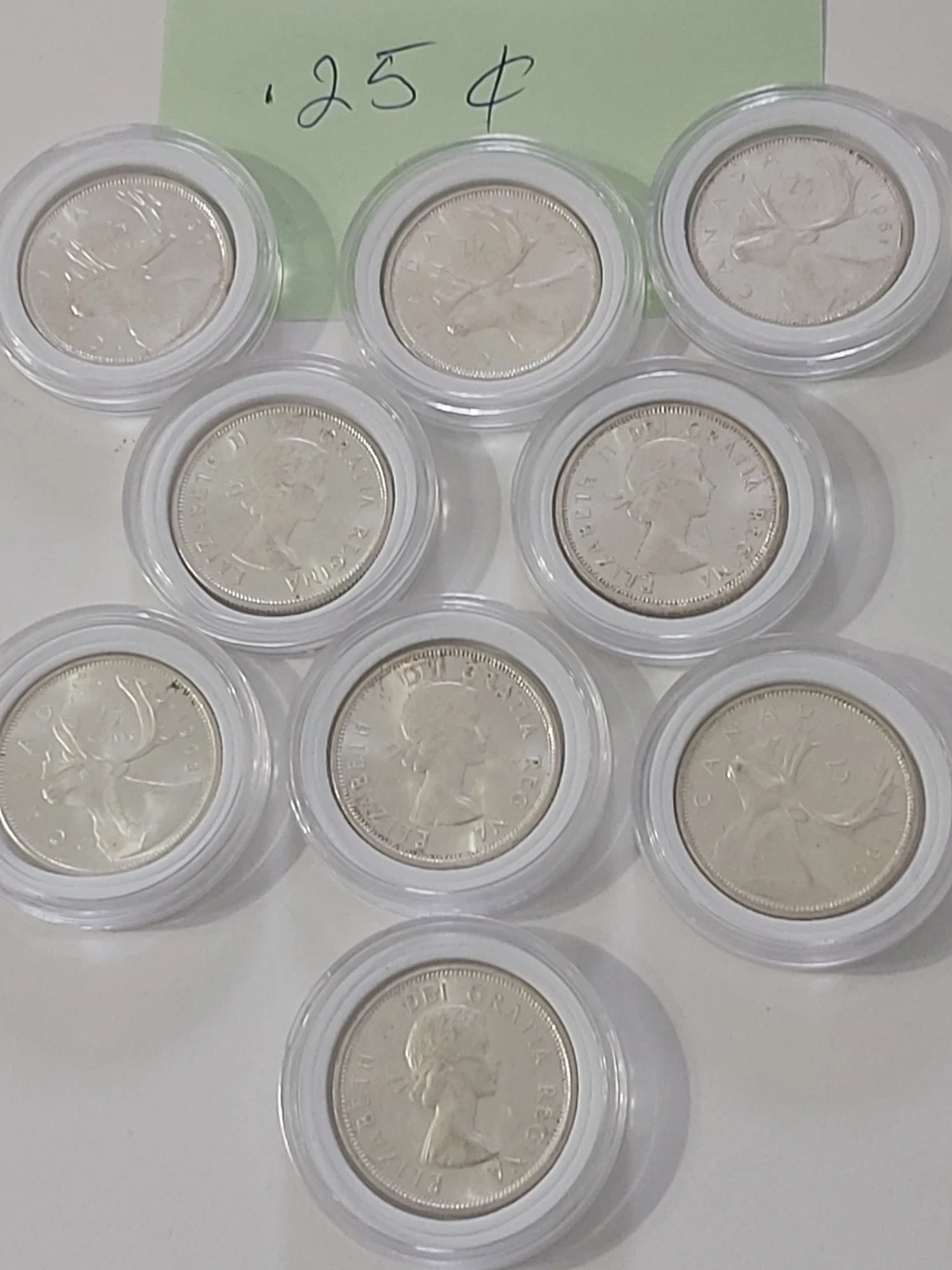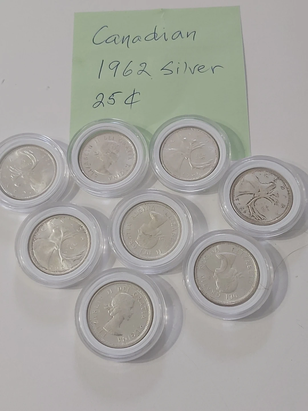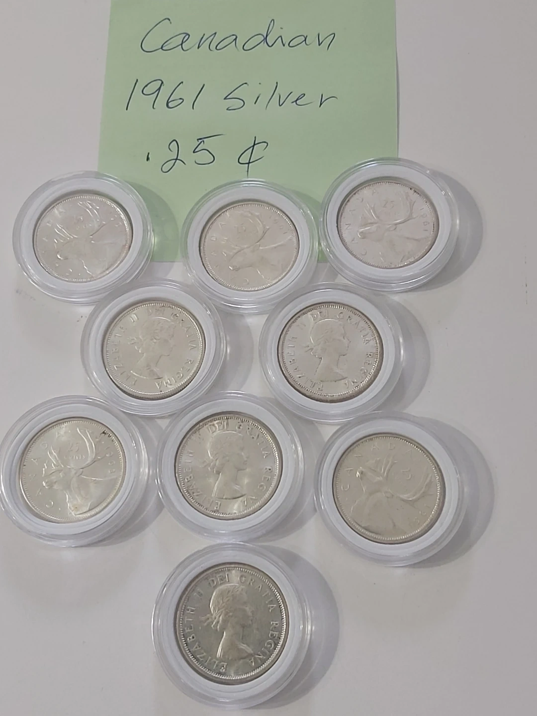 Selling a Canadian 1961 and 1962 silver 25 cent coin. It's in great condition and ready for a new collection.