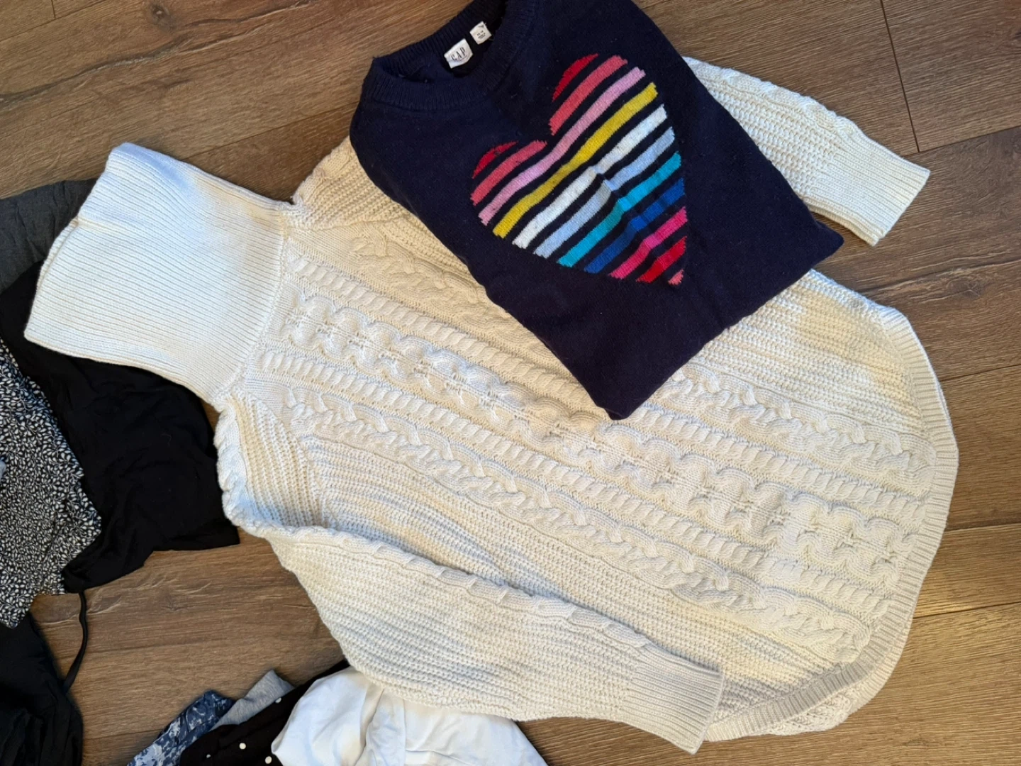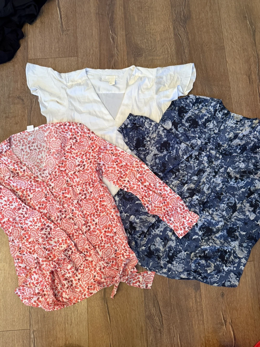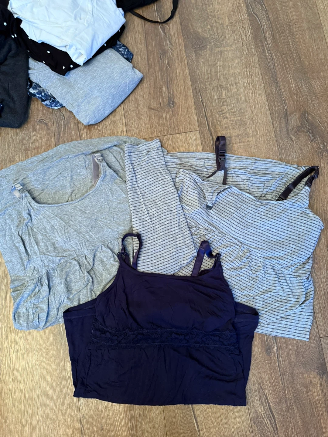 Selling a mixed lot of MATERNITY clothing, including items from Thyme, Old Navy, H&M and GAP! There's a variety of maternity shirts, blouses, sweaters, pants, shorts, and dresses in different colours. There are eight nursing tops and dresses. There is also a universal jacket extender (worth $130 + tax), two bathing suits and two belly bands. This bundle is perfect for building a capsule wardrobe or adding some new pieces to your closet.