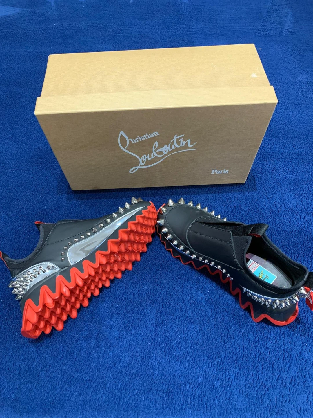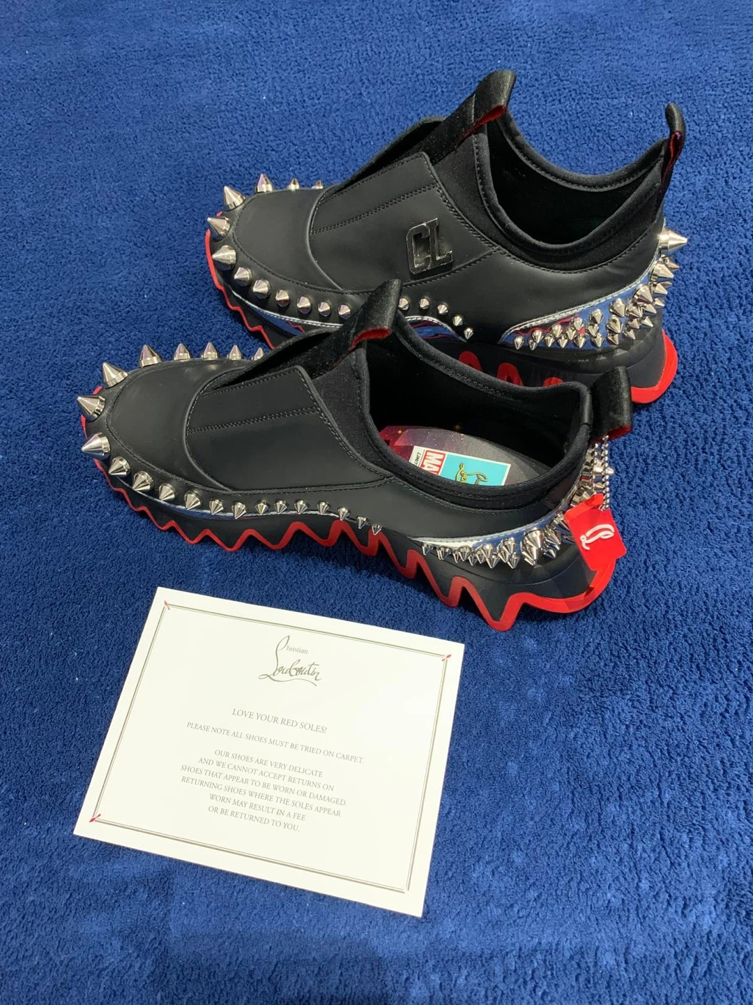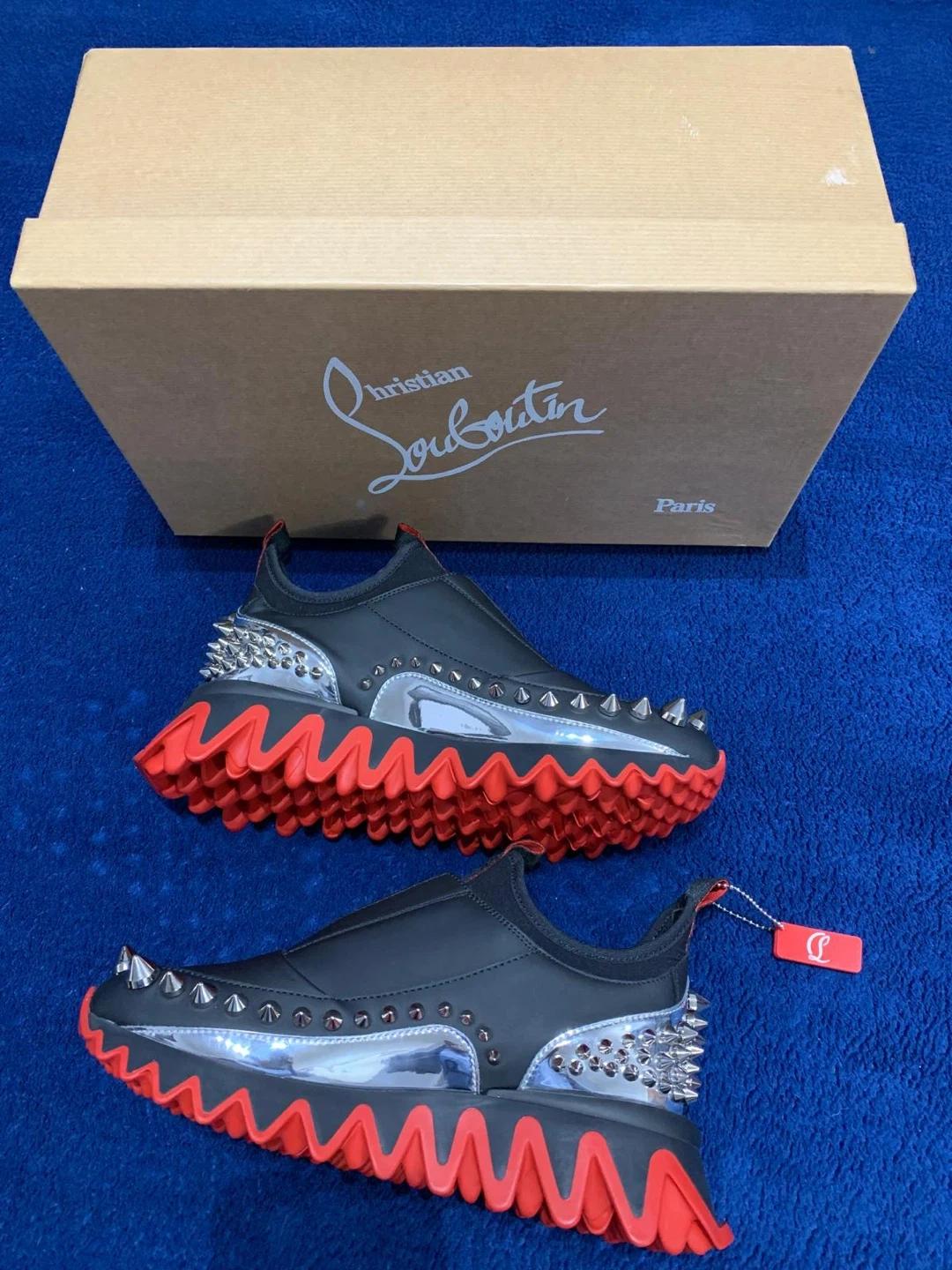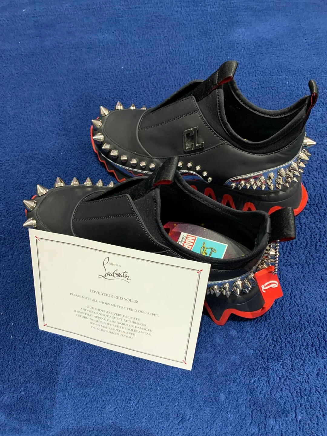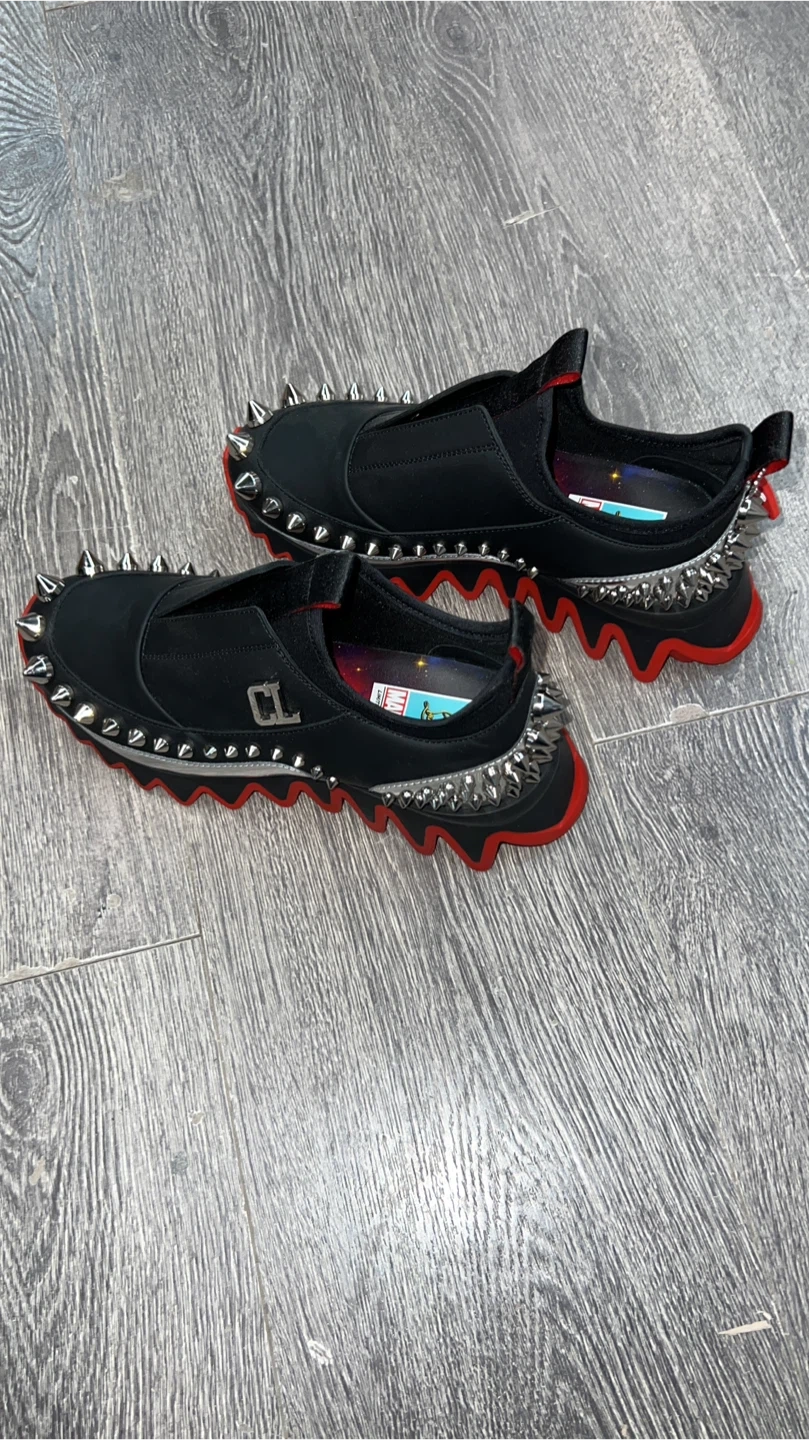 These are authentic special edition Marvel Christian Louboutin Spike Sock Donna brand new sneakers .The shoes feature a black upper, silver spikes, and a red sole, making them a unique statement piece for your wardrobe. Box is not included. Originally over $1100 retail. Price is firm.