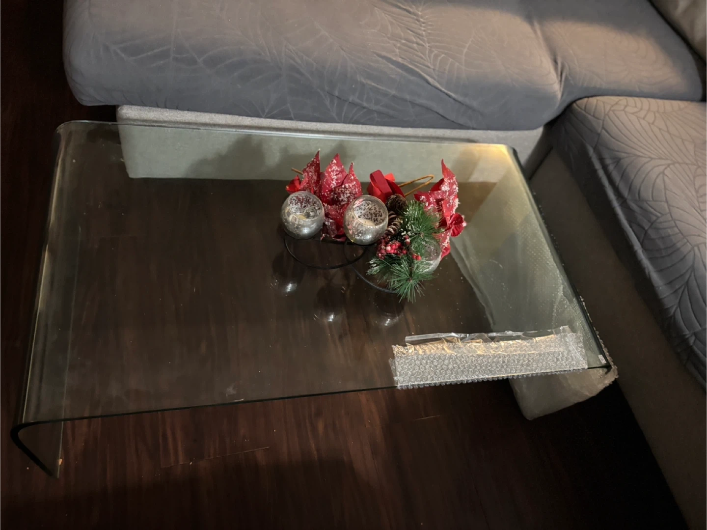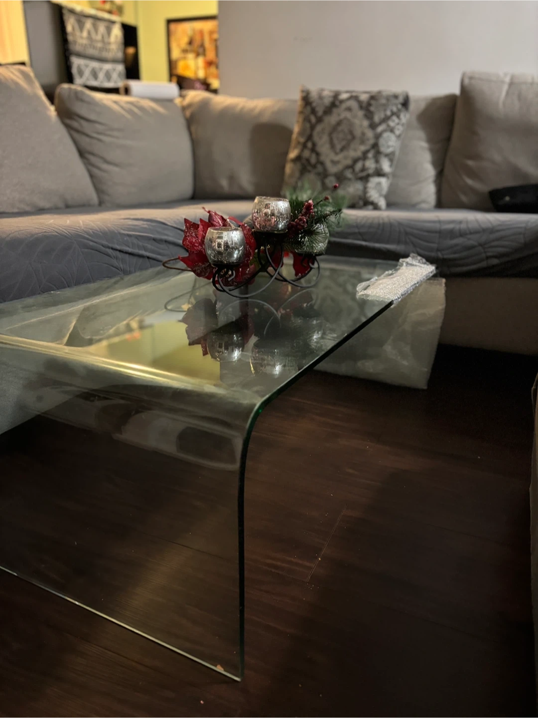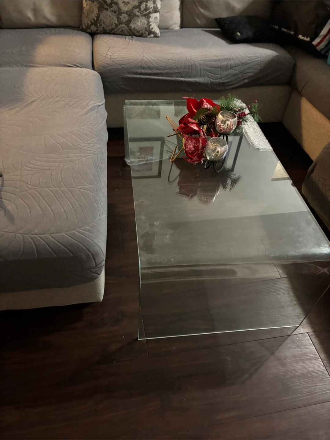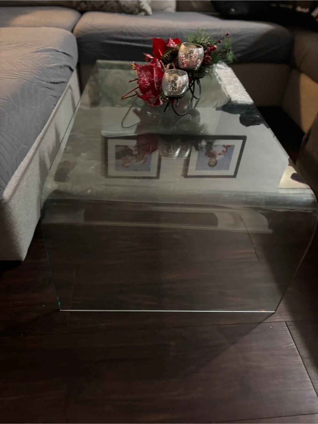 Selling a glass coffee table. It's in good condition and would look great in any living room! It has a sleek, modern design.