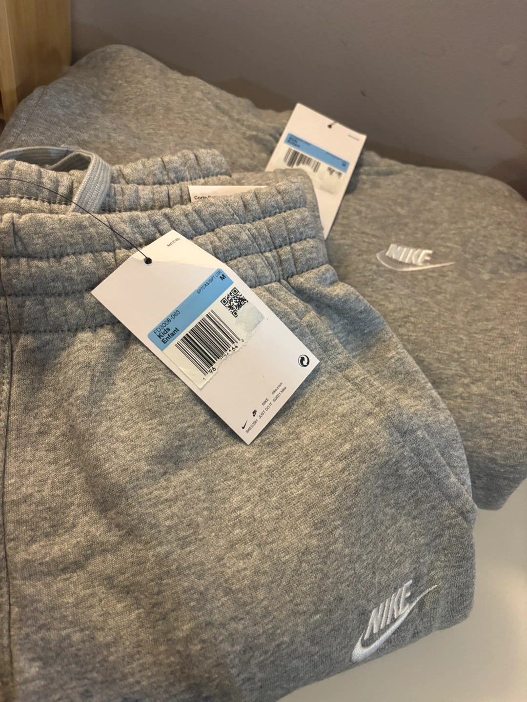 Brand new with tags Nike kids sweatsuit (hoodie and sweatpants) size M. My son got as a gift but he won’t fit it till way later down the line. I’m moving so trying to sell and downsize quite a bit.