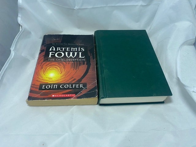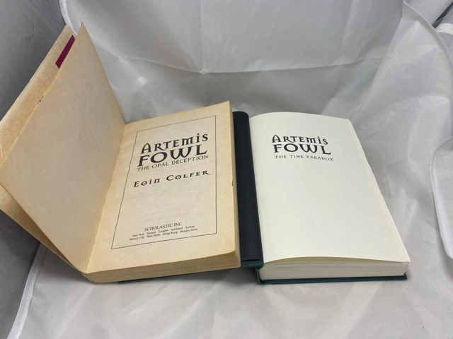 Dive into the magical world of Artemis Fowl with this first edition hardcover of "The Time Paradox," accompanied by "The Opal Deception," both by acclaimed author Eoin Colfer. The books are a treasure for any young reader or adult fan of the series, offering a blend of adventure, wit, and fantasy. Published in 2008, these novels continue to be a beloved addition to the Artemis Fowl collection. Both volumes come in English and feature a dust jacket and deckle-edged paper, enhancing the reading experience. The narrative, geared towards ages 9-12, yet enjoyed by many adults, tells the enchanting tale of the young anti-hero Artemis and his adventures in a world where fairies are real. Whether for a personal library or as a thoughtful gift, these books are sure to captivate and entertain.