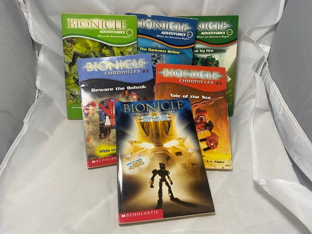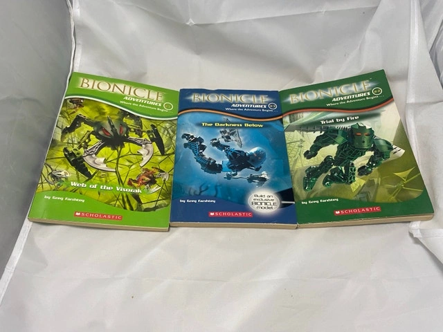 Immerse yourself in the epic world of Bionicle with this set of captivating books. The collection features 'Bionicle Adventures' books 2, 3, and 7, along with 'Chronicles' volumes 1 and 2, and the 'Mask of Light' paperback series. Authored by a variety of writers, these books offer a rich blend of adventure and mystery that will enthrall fans of the genre. Published by Scholastic in 2004, these English language paperbacks are a treasure for any collector or enthusiast. Originating from the United States, the series is a testament to the enduring legacy of the Bionicle universe. Whether you’re revisiting the tales or discovering them for the first time, these books promise to transport you to an unforgettable realm of action and intrigue.