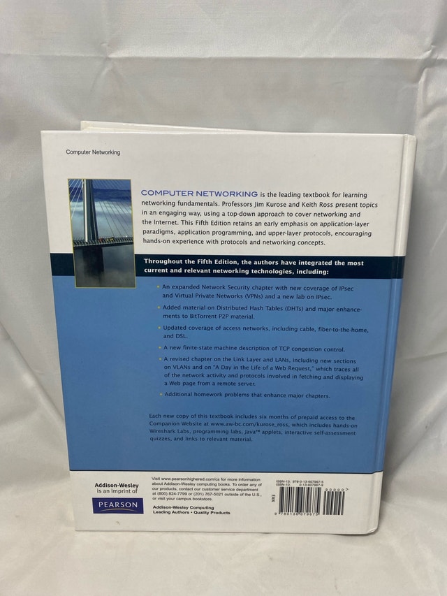 Delve into the intricacies of computer communications with "Computer Networking: A Top-Down Approach" by James F. and Keith W. Ross. This textbook is a comprehensive resource for students and professionals alike, offering an in-depth exploration of networks and network protocols. Whether you're pursuing a degree in computer science or simply looking to expand your knowledge on the subject, this book provides clear and detailed explanations that cater to both beginners and seasoned experts. Its broad coverage of the topic area makes it a valuable addition to any academic collection or personal library focused on computing and networking.