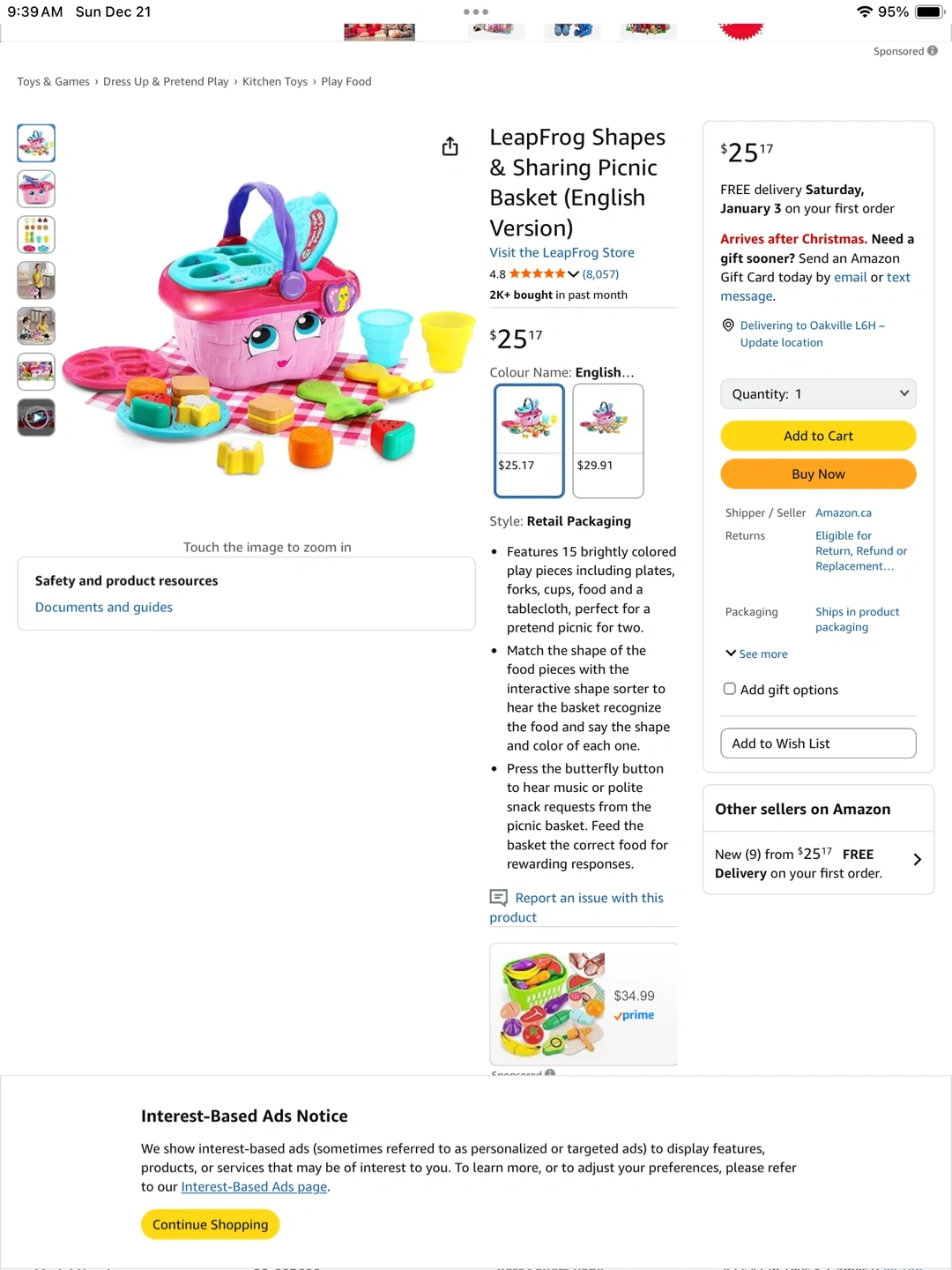 LEAP FROG picnic basket is just missing 2 small cups. Could use other cups.