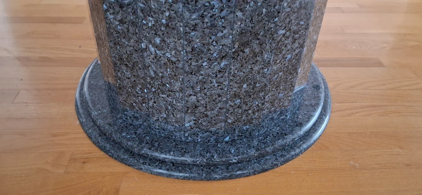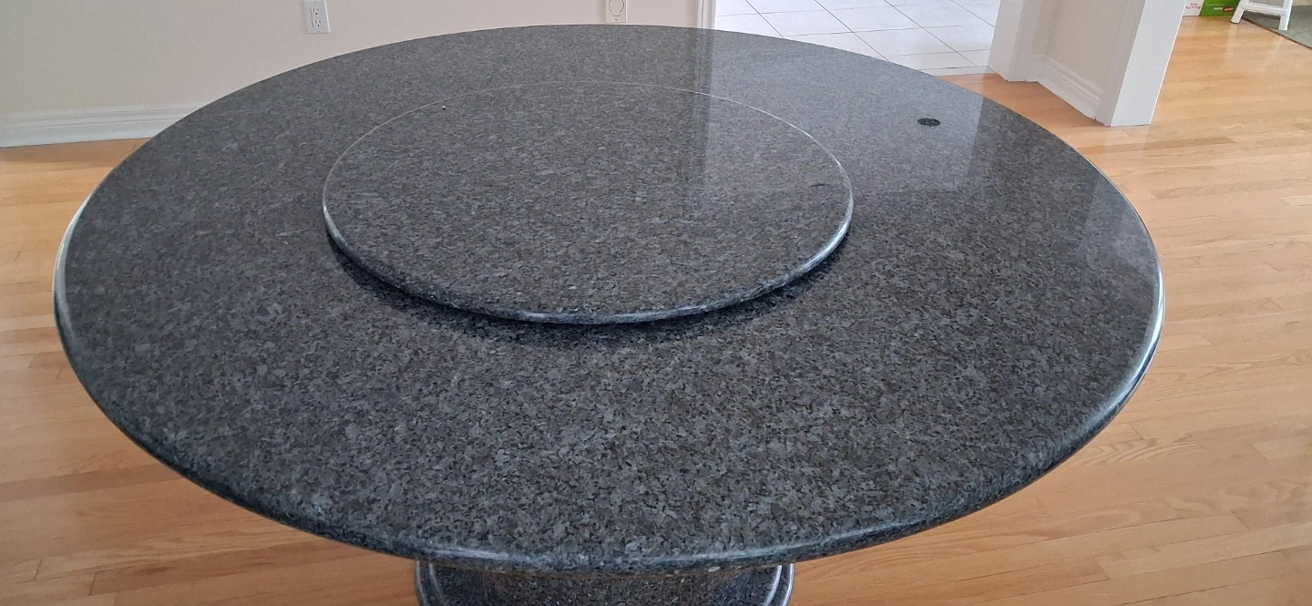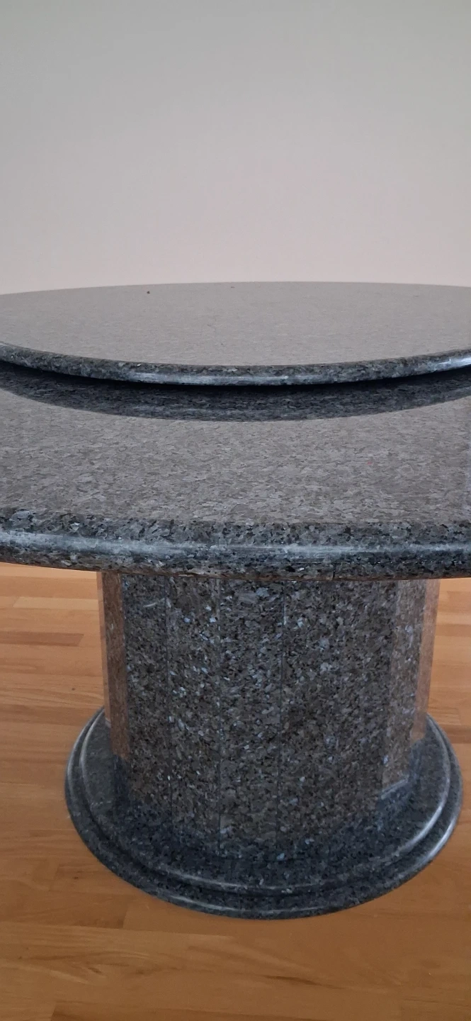 Selling a beautiful granite round dining table! It's in great condition and would be a lovely addition to any dining room. The table features a unique granite pattern and a sturdy base.