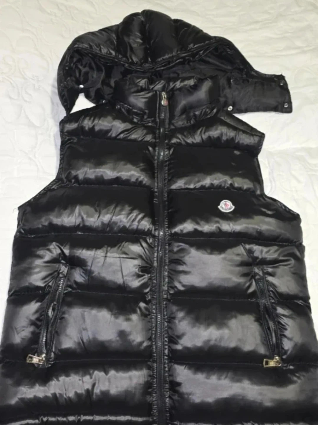 A stylish luxury black Moncler padded vest. It's used like new and in great condition and perfect for layering! The vest is in a size xl