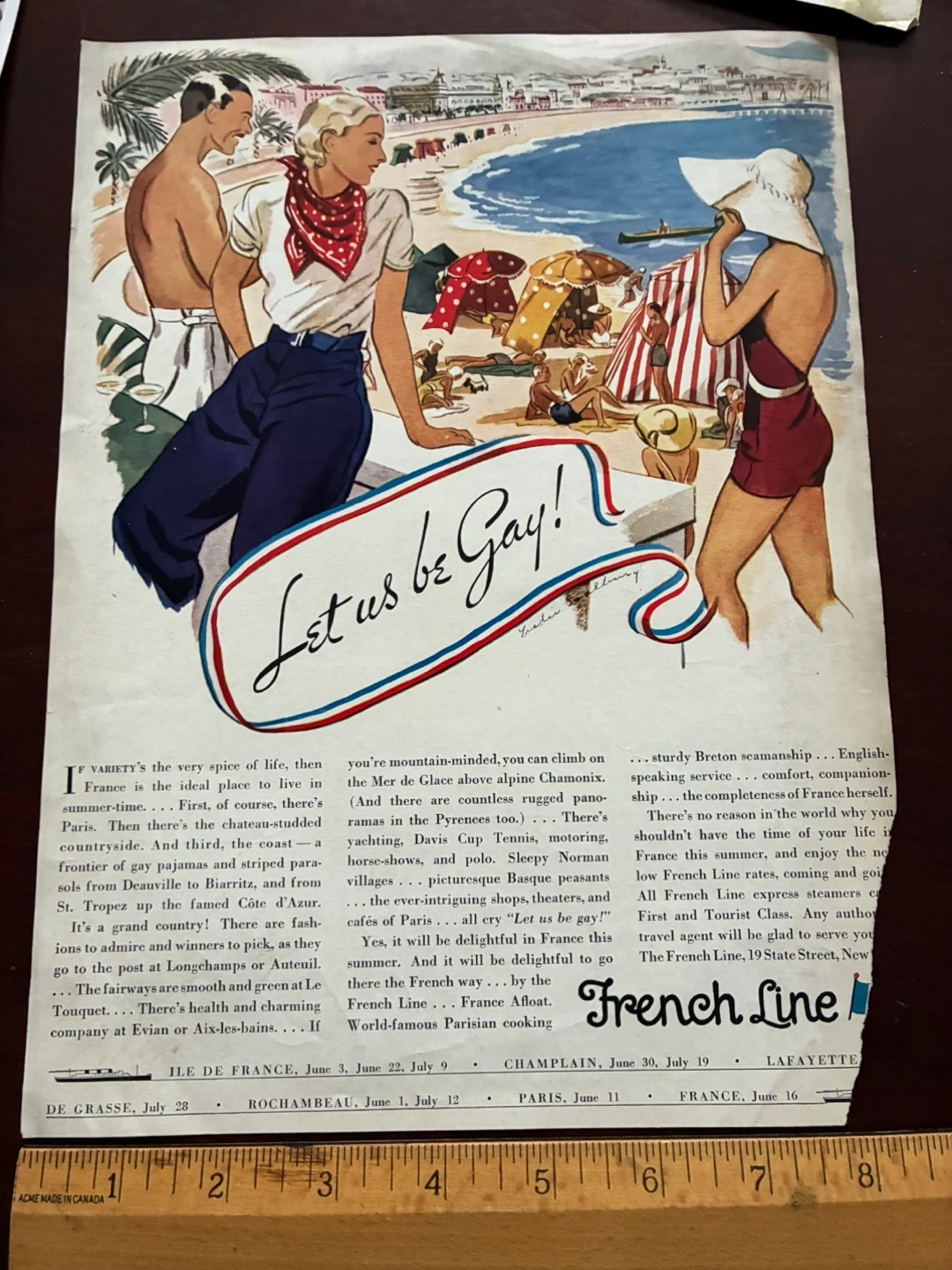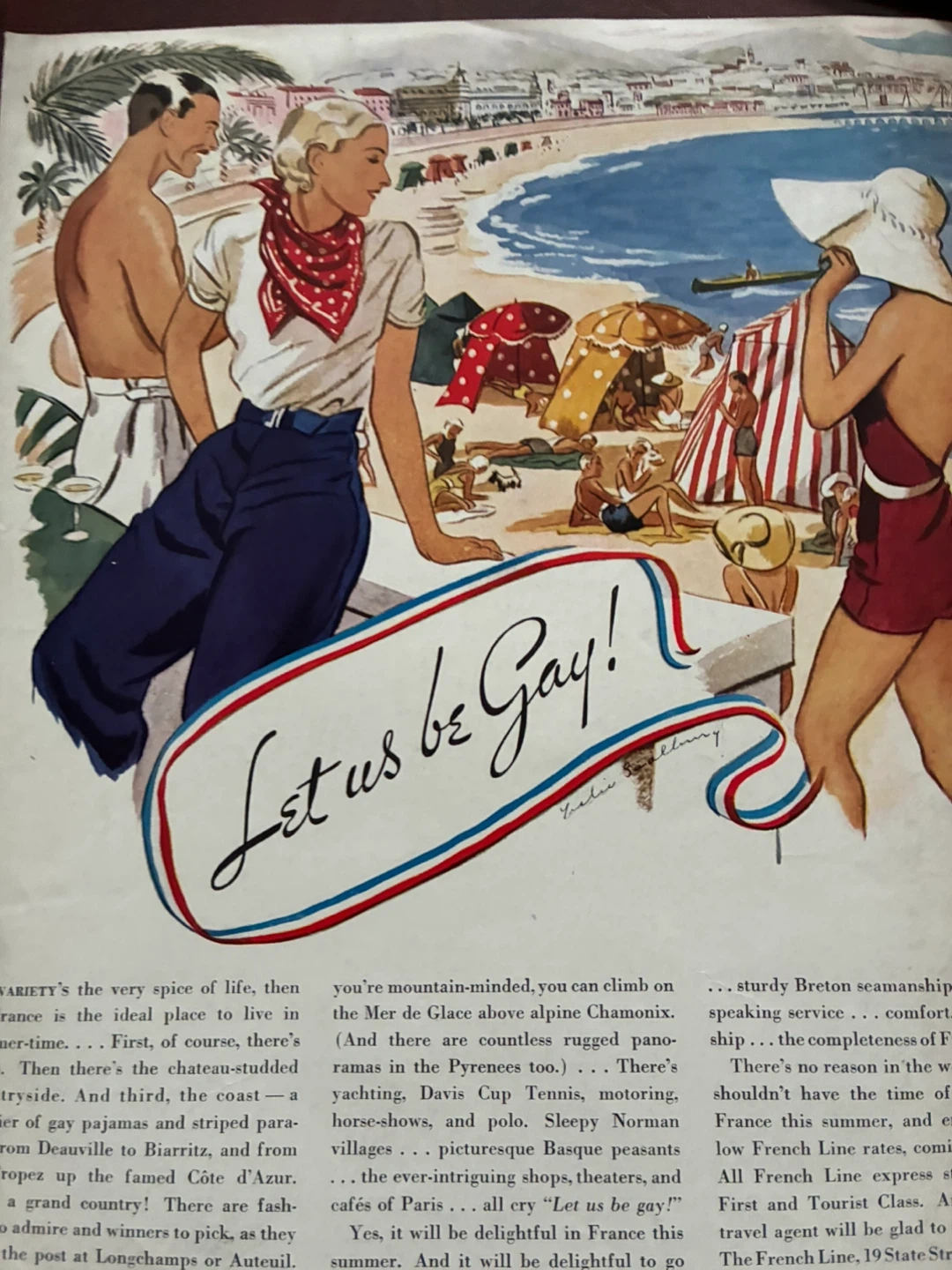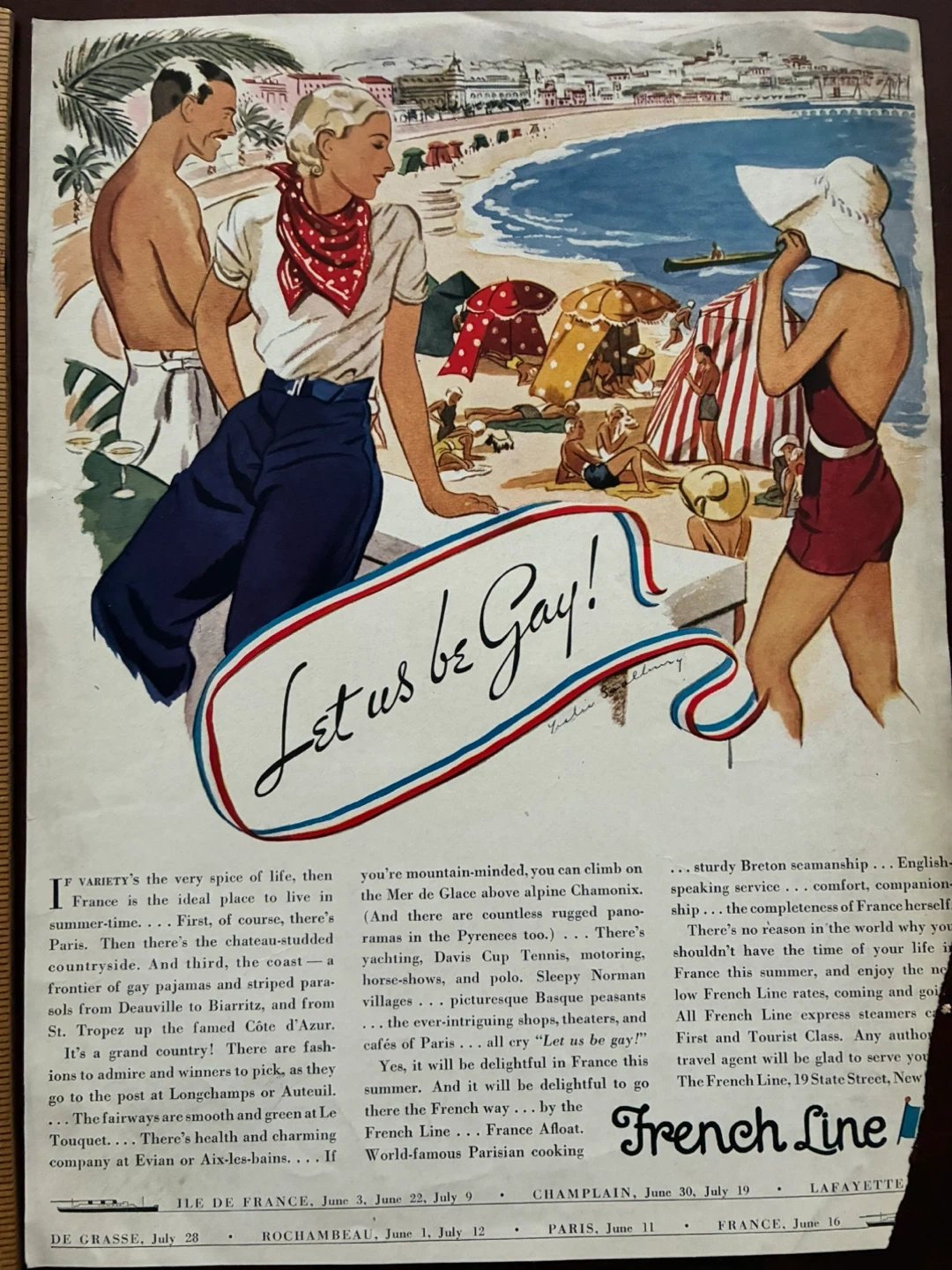 "Let us be Gay" art deco ad 1932 FRENCH LINE STEAMSHIP CRUISE