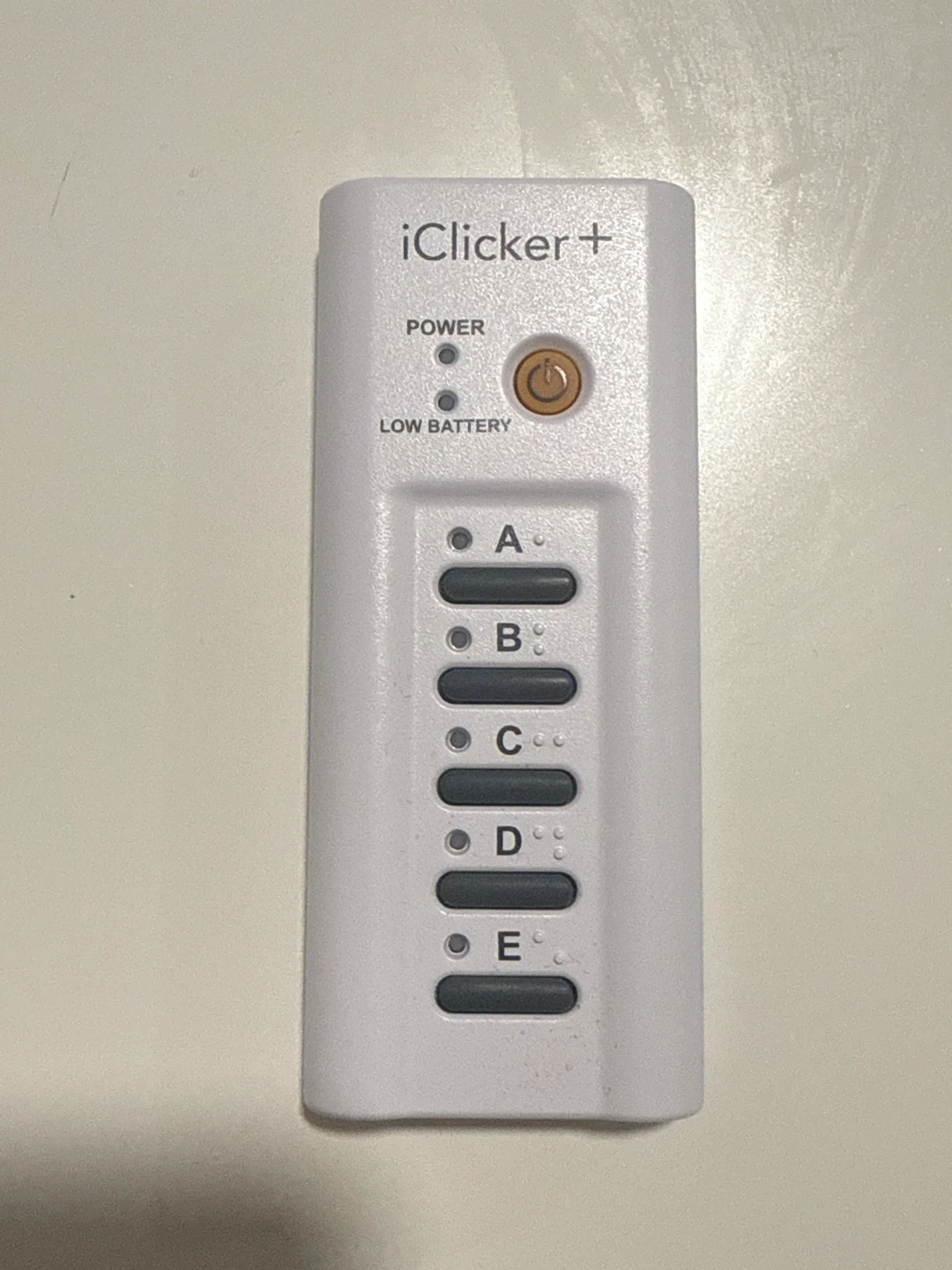 Selling an iClicker+ student response remote. It's in good condition and ready to help you ace your classes! Features include power and low battery indicators, along with response buttons A through E