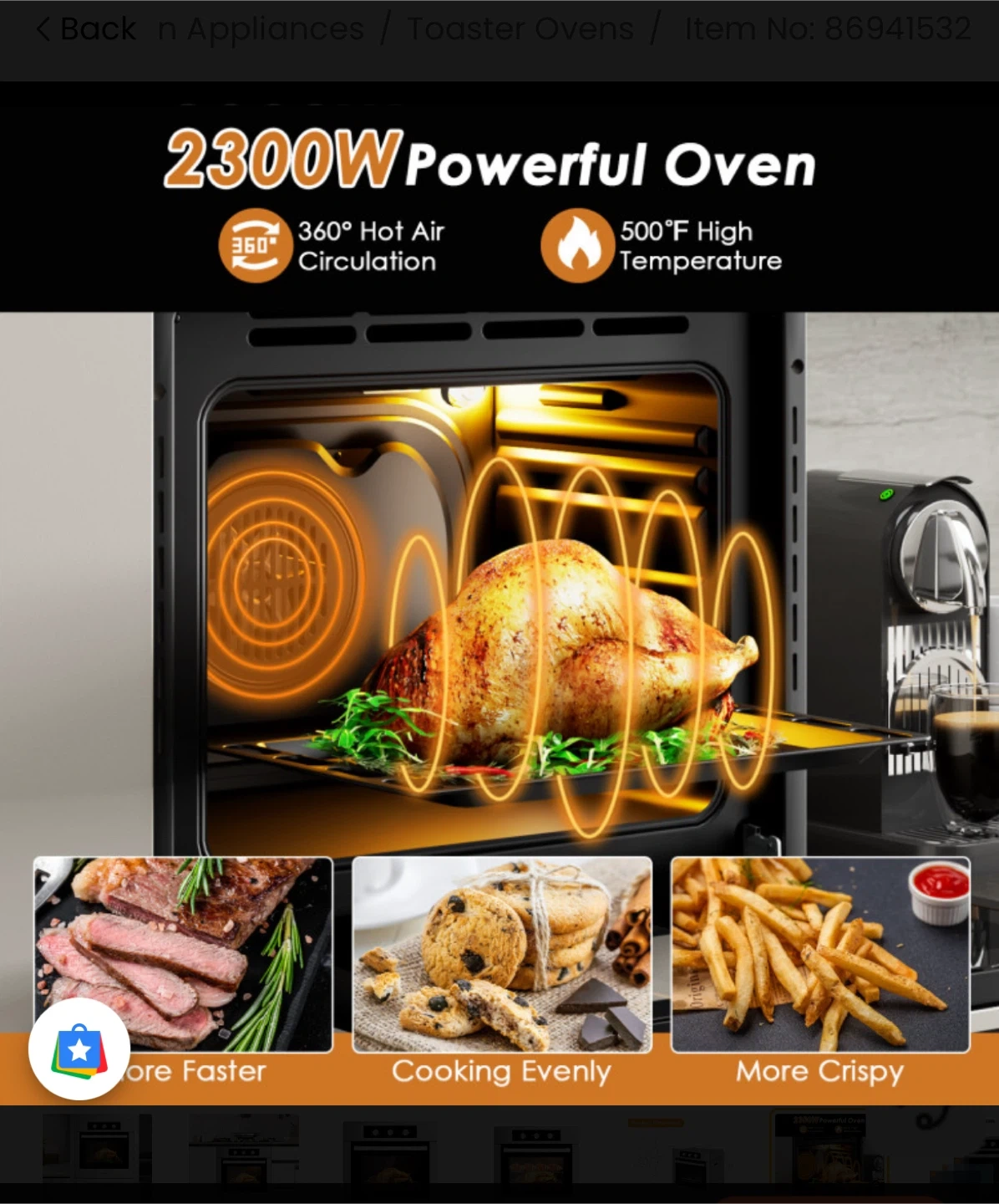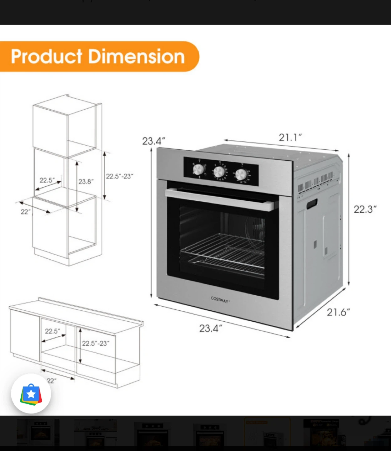 Selling a Costway 2300W powerful oven! It features 360° hot air circulation and can reach 500°F high temperature. The oven has a 3-layer tempered glass for effective heat insulation. Dimensions are 23.4" x 21.1" x 22.3".