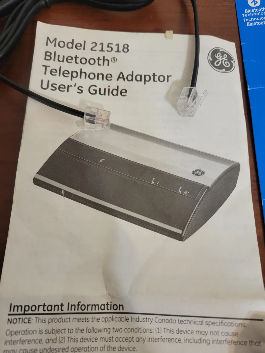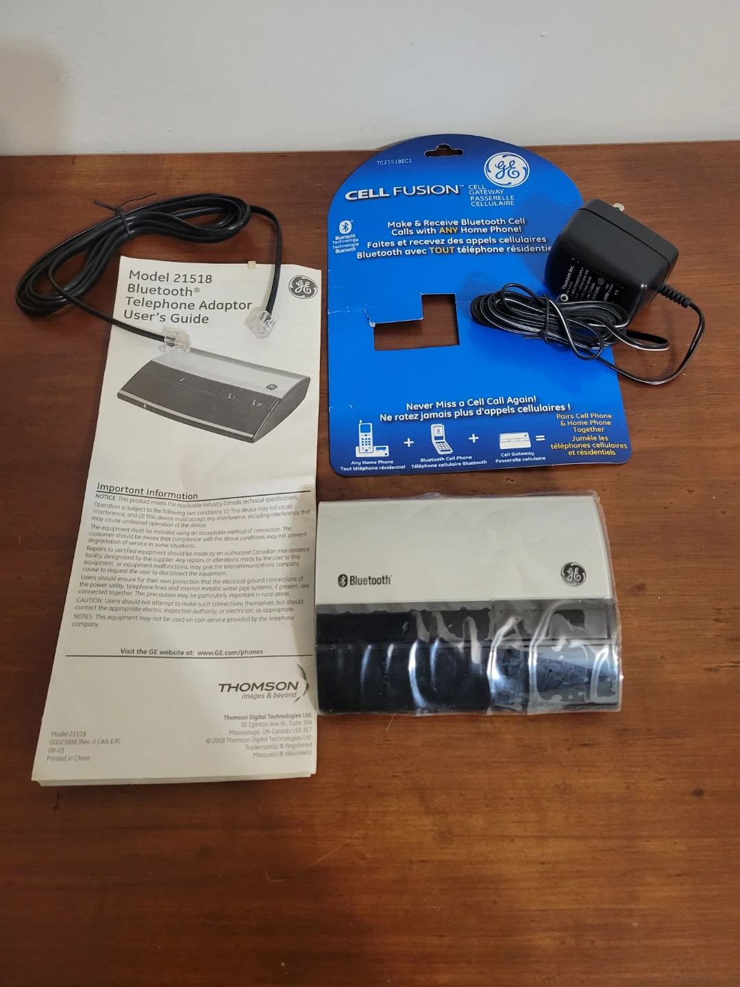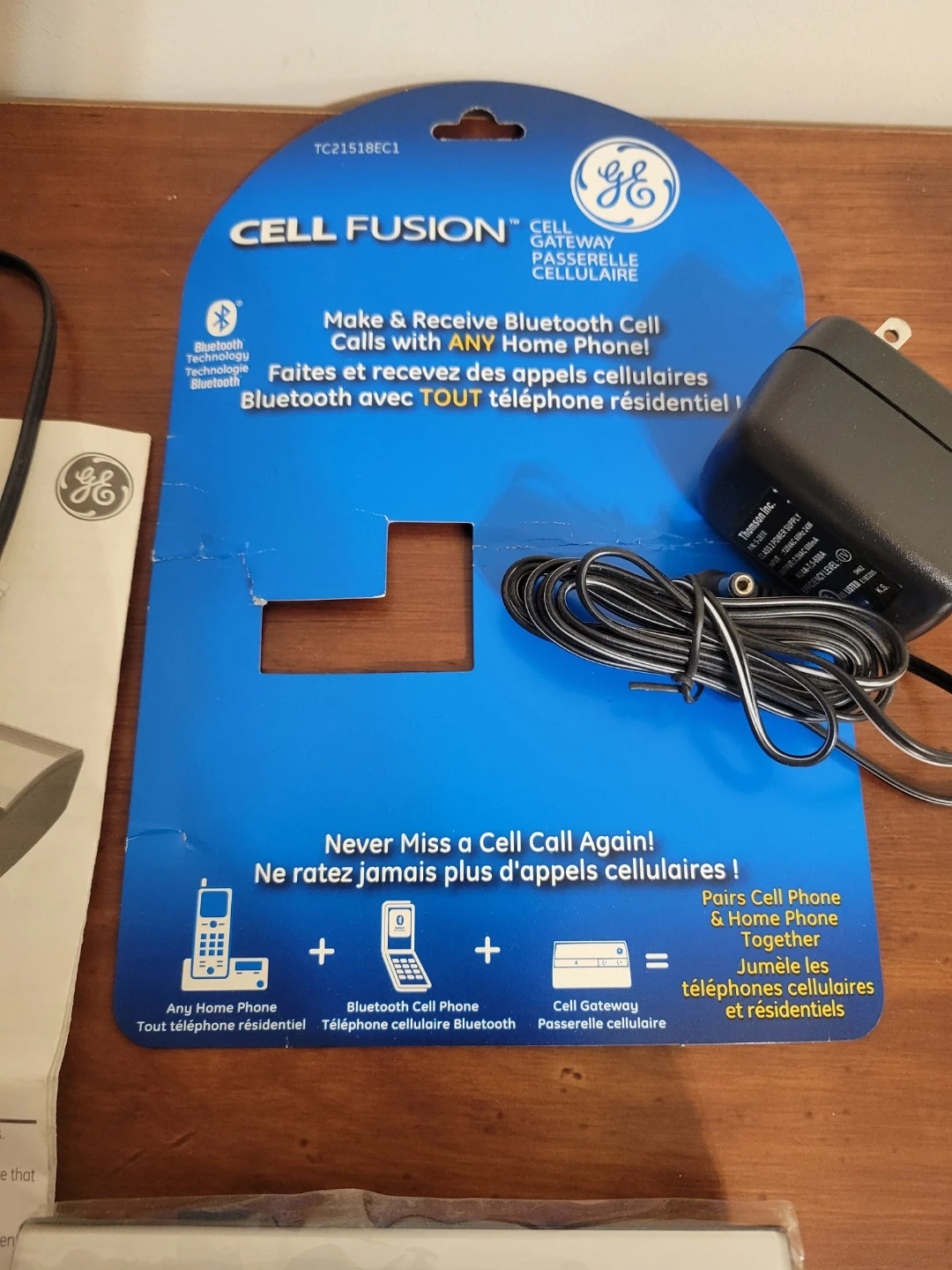 Selling a GE Cell Fusion Bluetooth Telephone Adapter, model 21518. It allows you to make and receive Bluetooth cell calls with any home phone. The adapter comes with the user's guide and power supply. Never miss a call again!