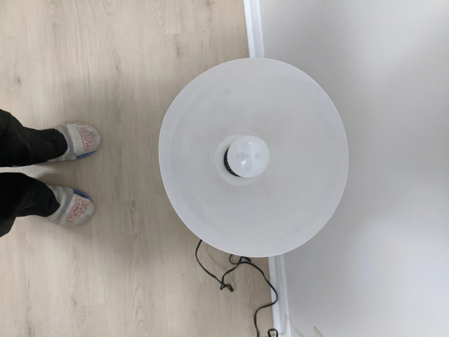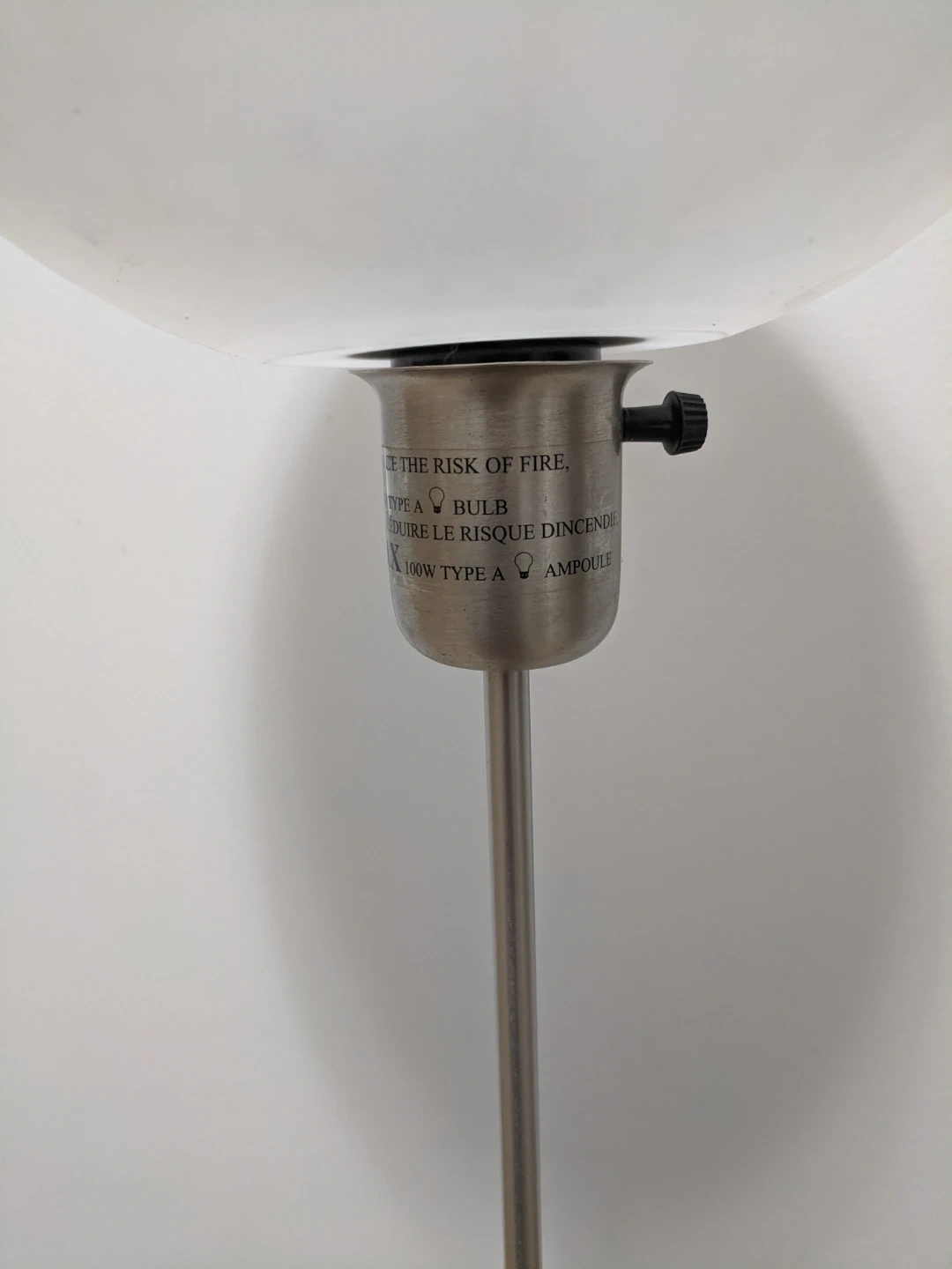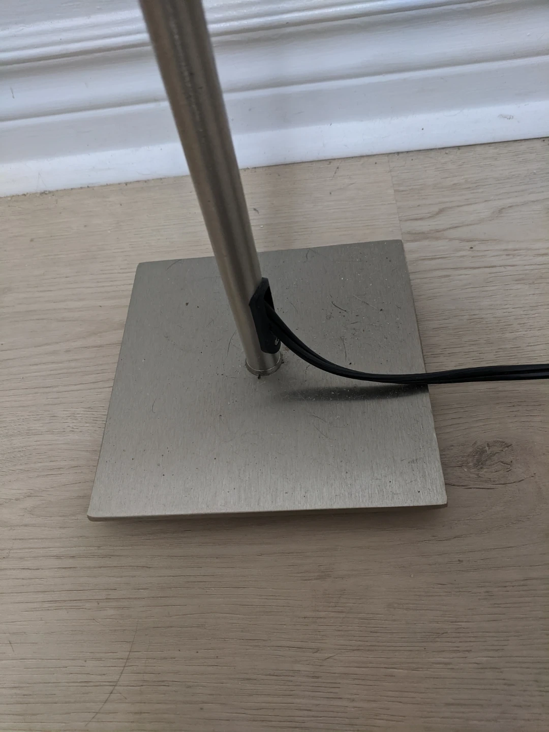Selling a stylish torchiere tinny floor lamp. It has a minimalist design with a white shade and a brushed metal base. It's perfect for adding ambient lighting to any room in your home. Height:22"~29.5".