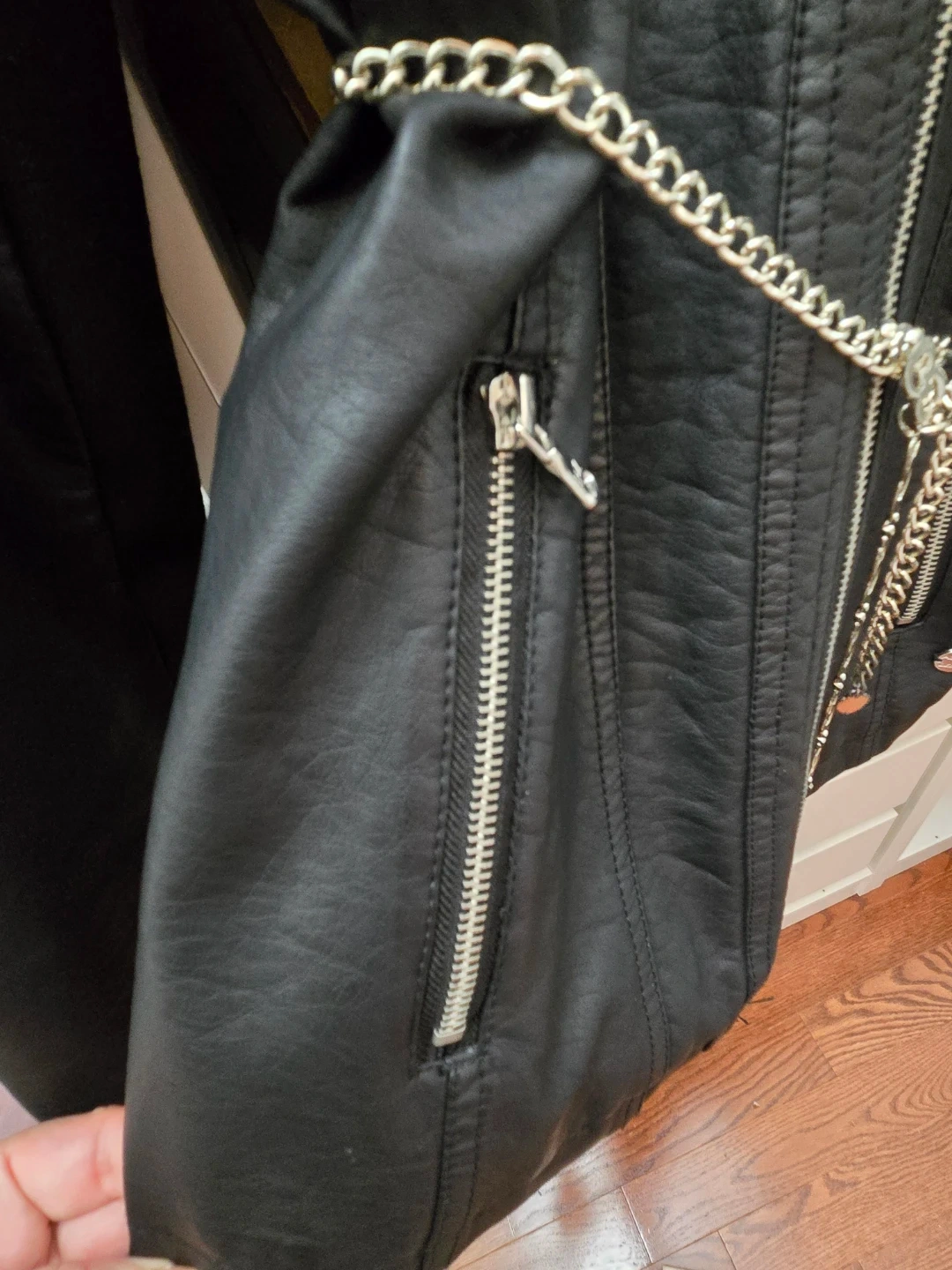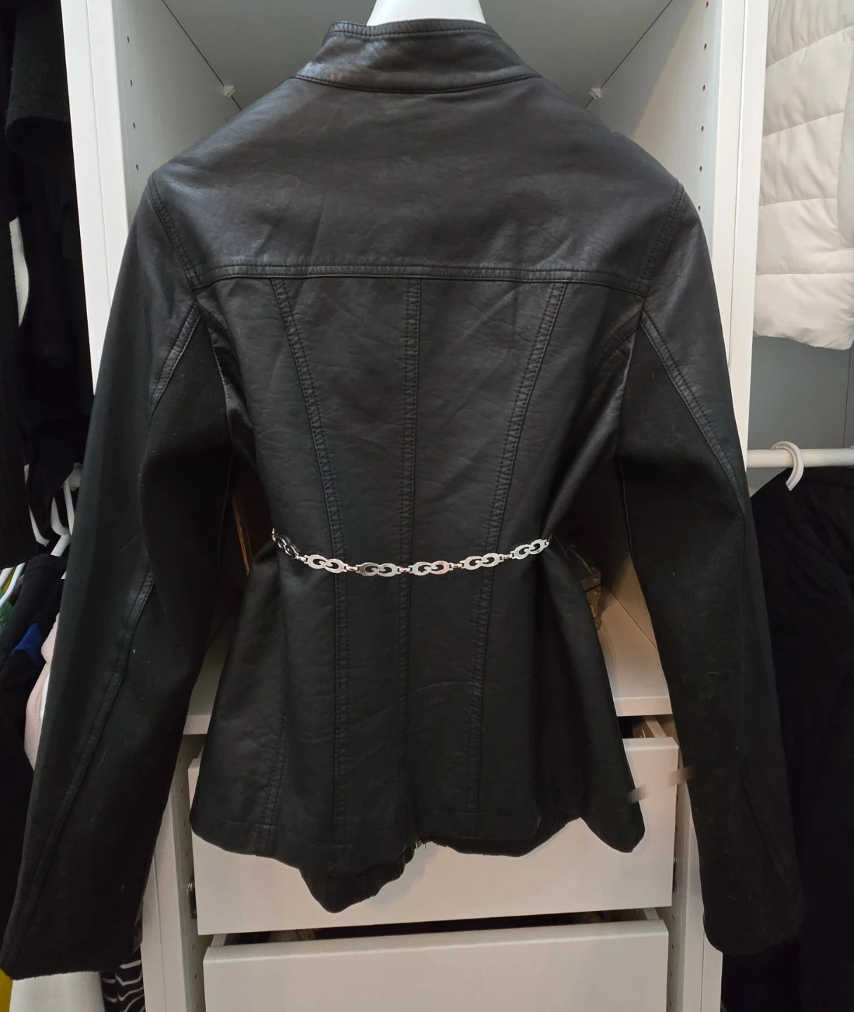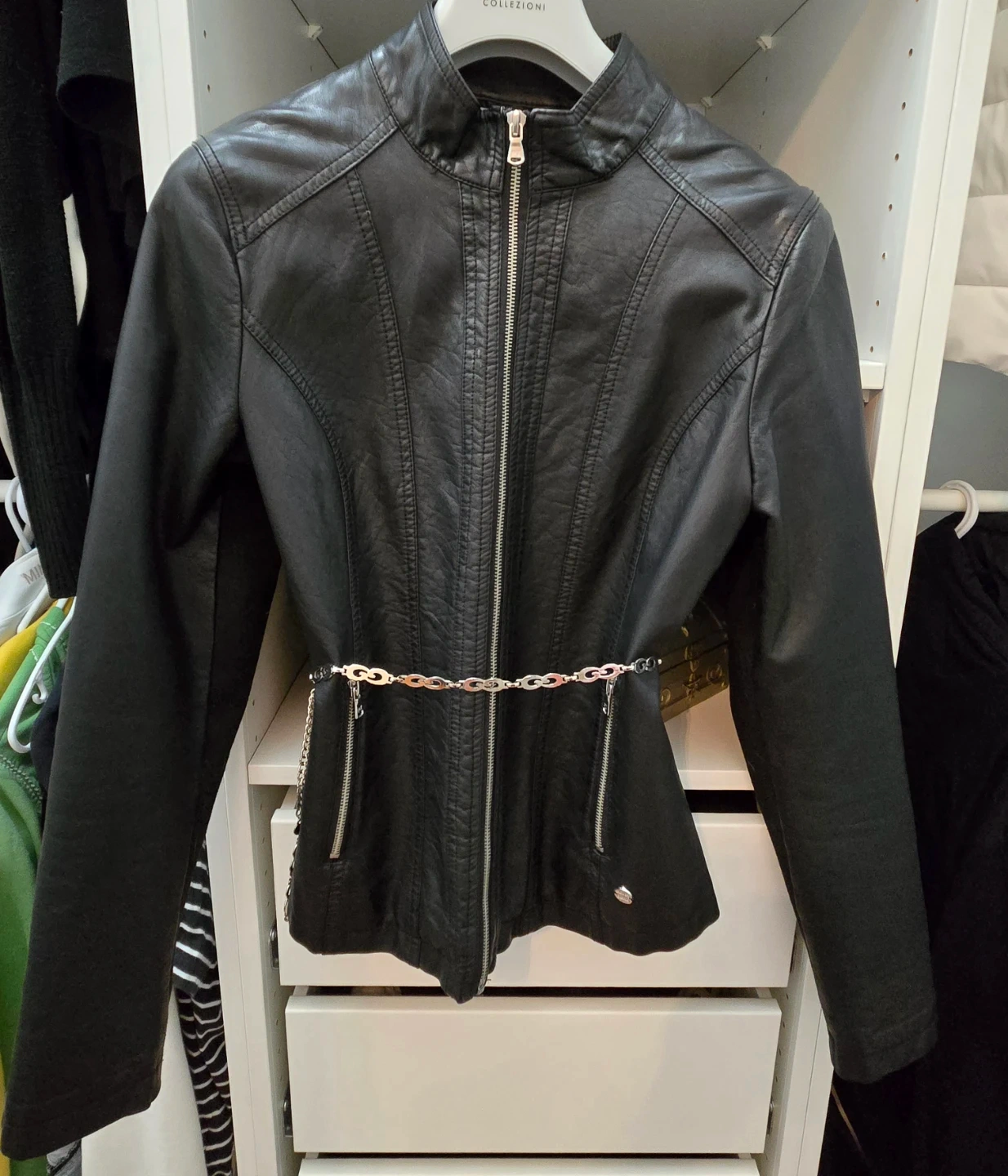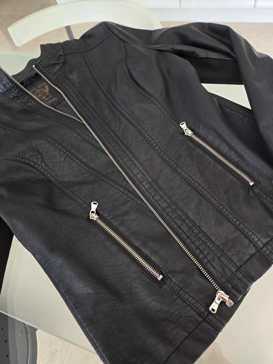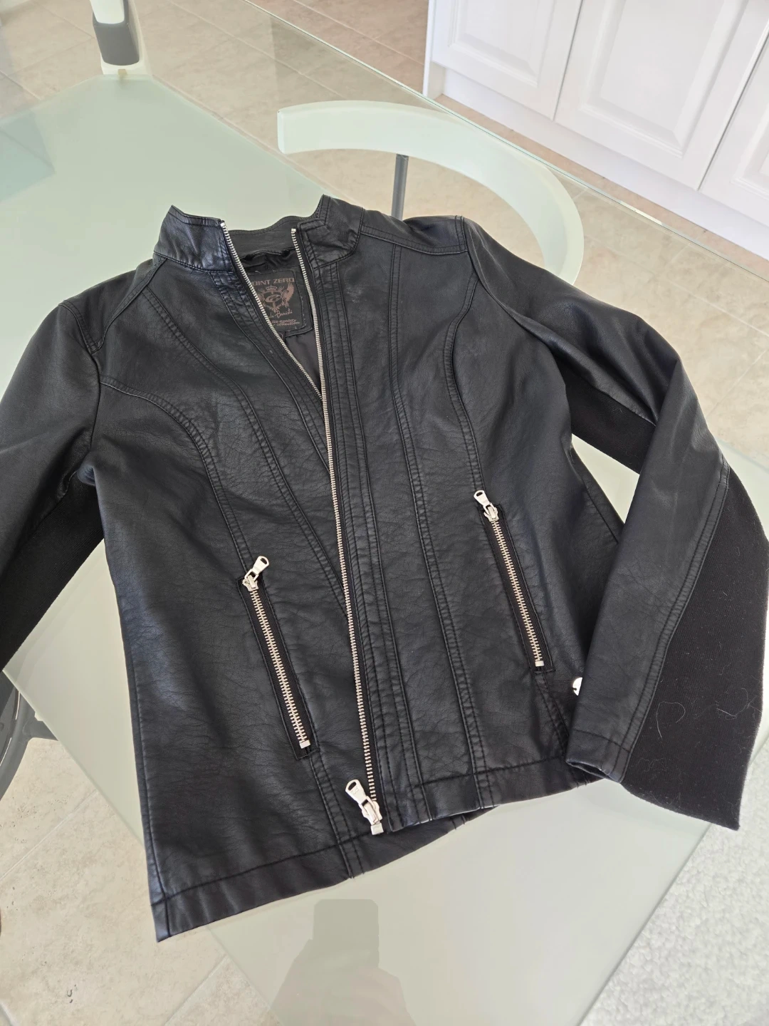 Selling a stylish black faux leather jacket from Point Zero! It feature silver zippers detail and a flattering fit. Perfect for adding a bit of edge to any outfit. Belt chain is not included.
