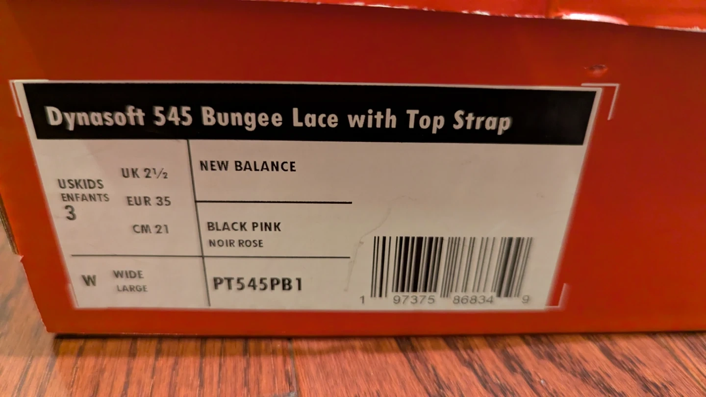 I'm selling a pair of New Balance Dynasoft 545 Bungee Lace with Top Strap sneakers for kids. They are black and pink and a US kids size 3. They are wide/large fit. Comes with the box!